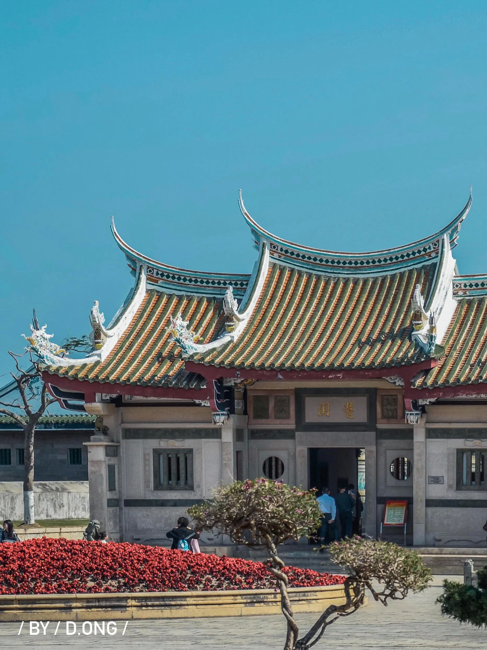 鳌园是嘉庚先生最后的长眠之所,心情该是沉重的,但在这蓝天碧海间,一步一步,望着满目轻盈的蓝,风声伴着浪声,仿佛他留下的一切一切,都写成了一首充满愉悦的诗歌。