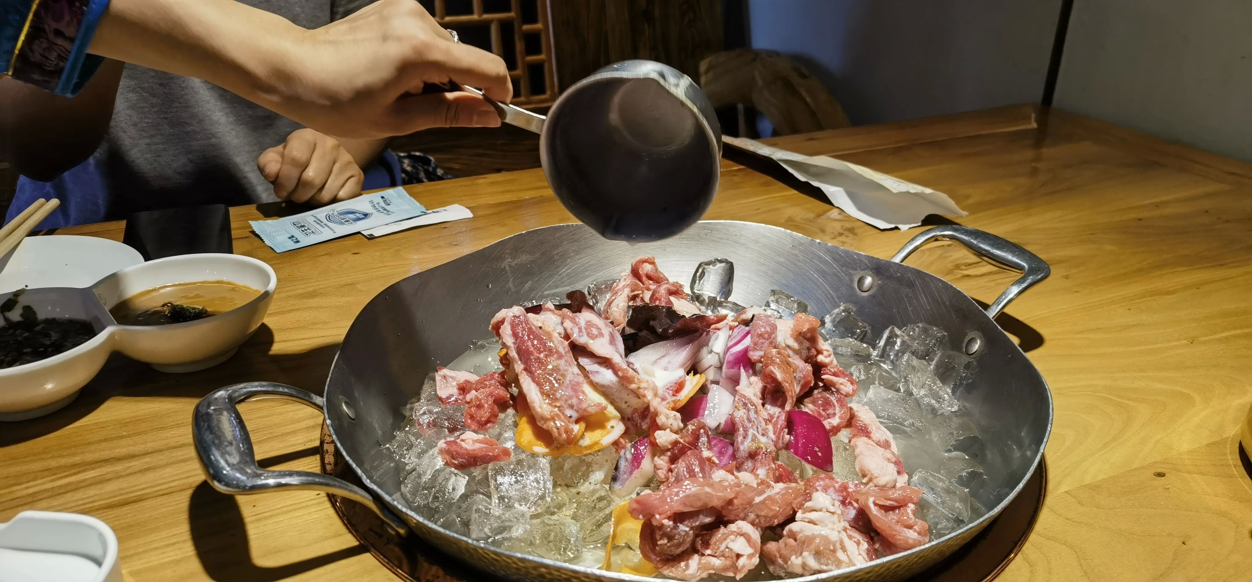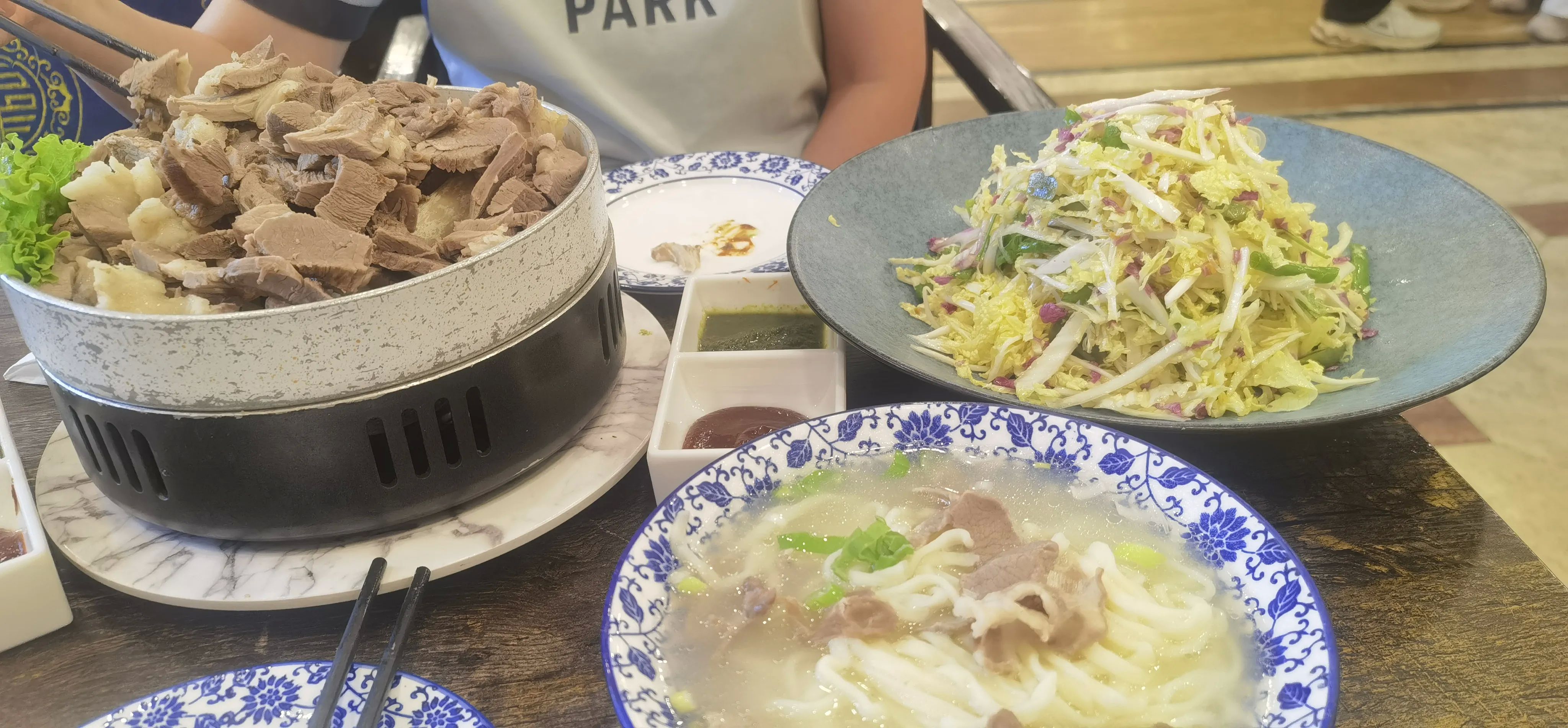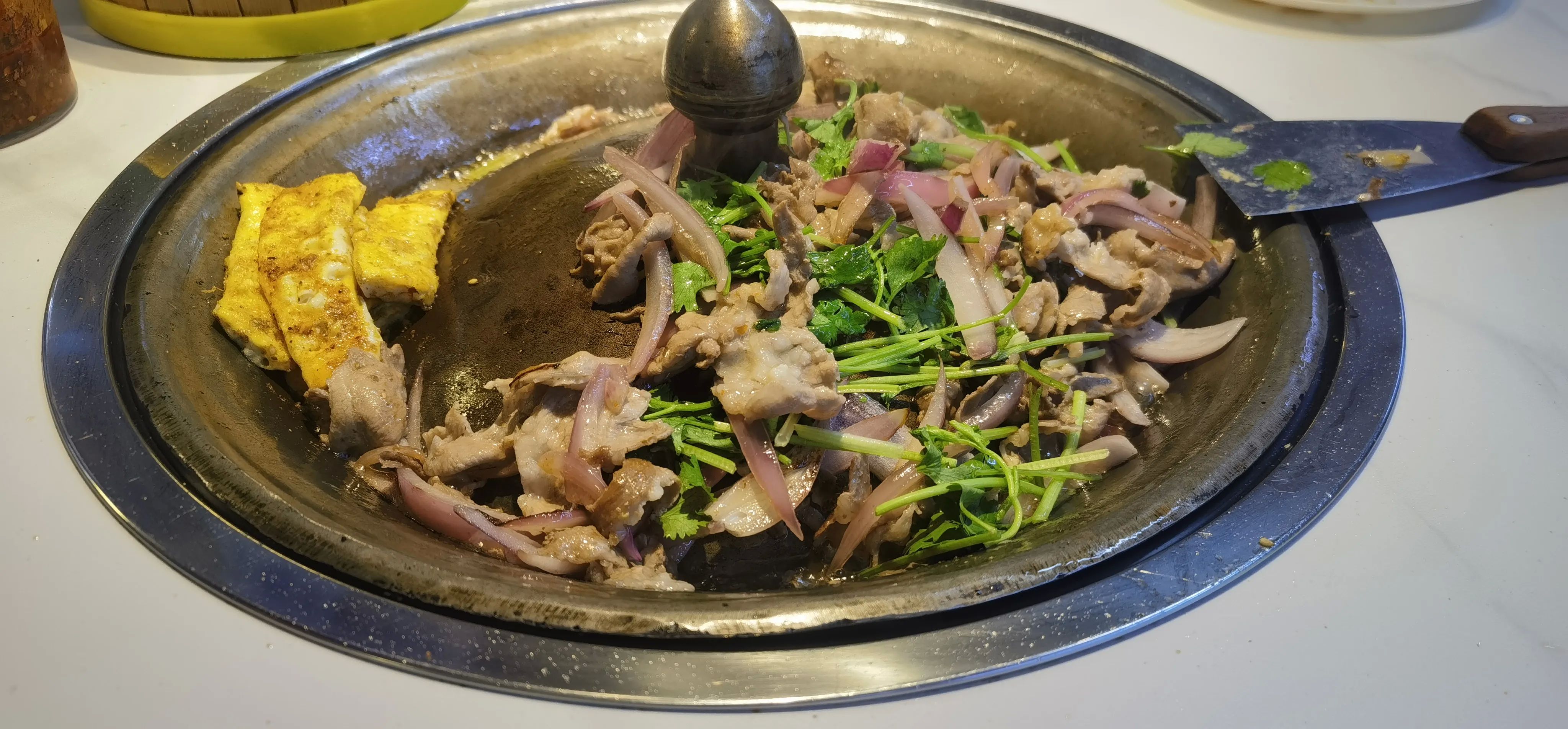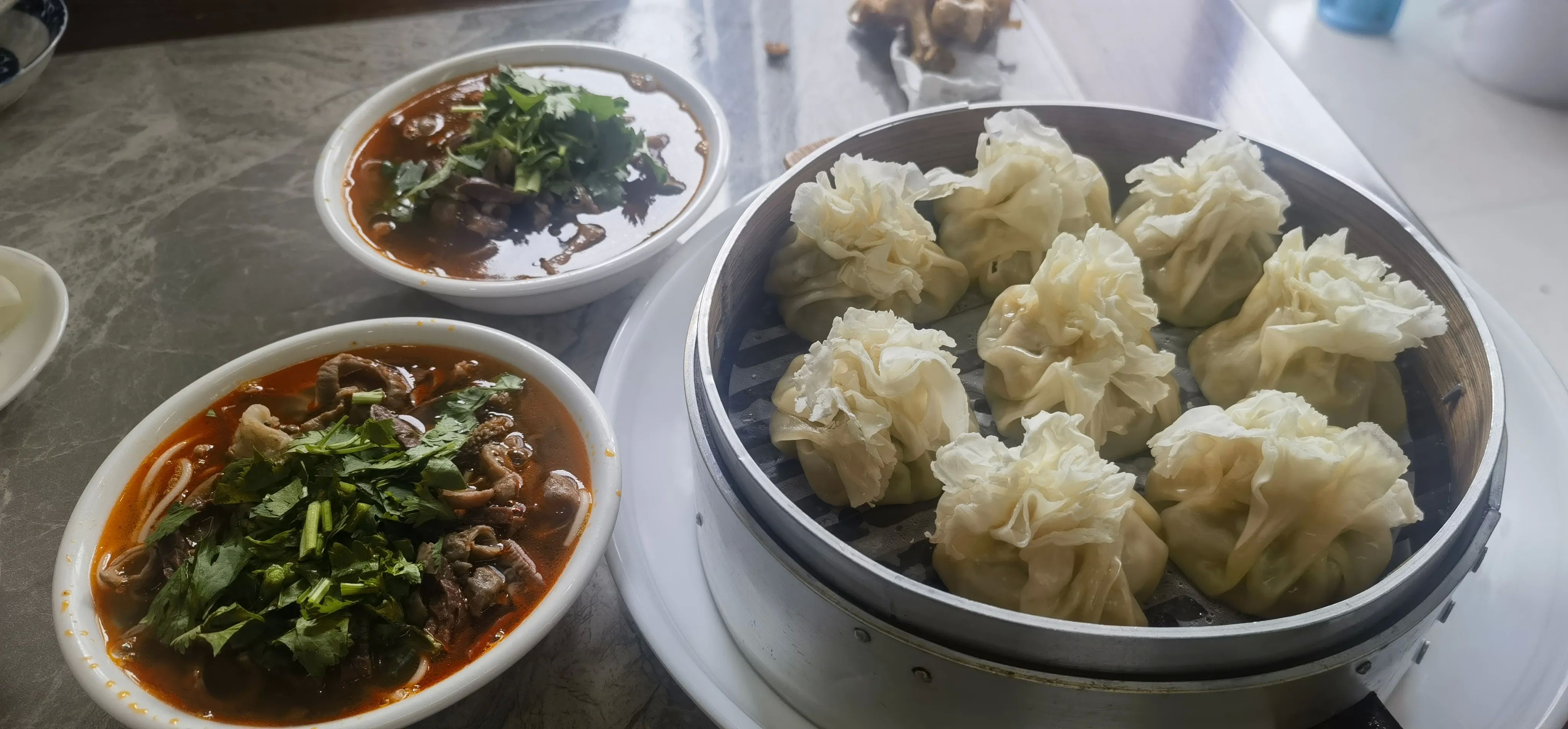 这次去内蒙,感觉当地的美食也很好吃,但就是品种有点少。除了最有名的薄皮烧麦,我们还吃了当地的手把肉、冰煮羊和羊杂汤、铁帽子烤肉、肉饼、奶酪饼、酸奶饼等等。新疆城市的夜市很多,但是在内蒙,好像没有听说晚上哪里有夜市。