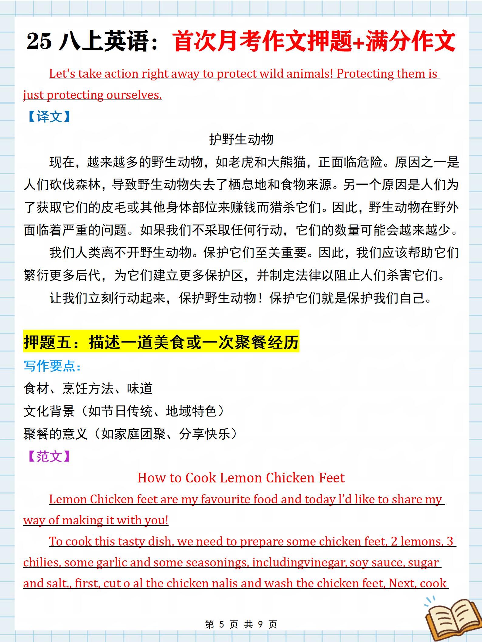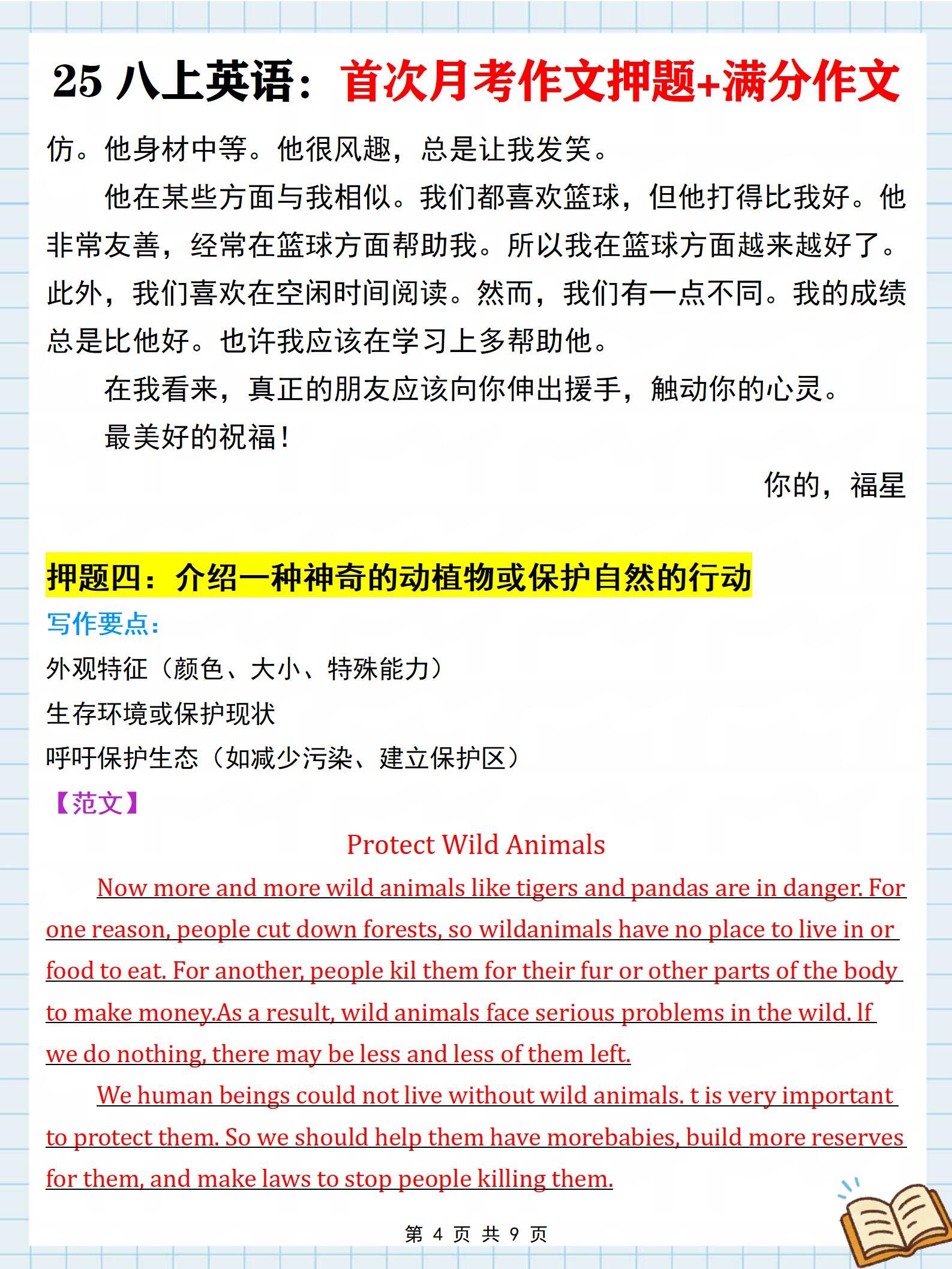 八上英语第一次月考:作文押题+语法短语,全方位冲刺高分