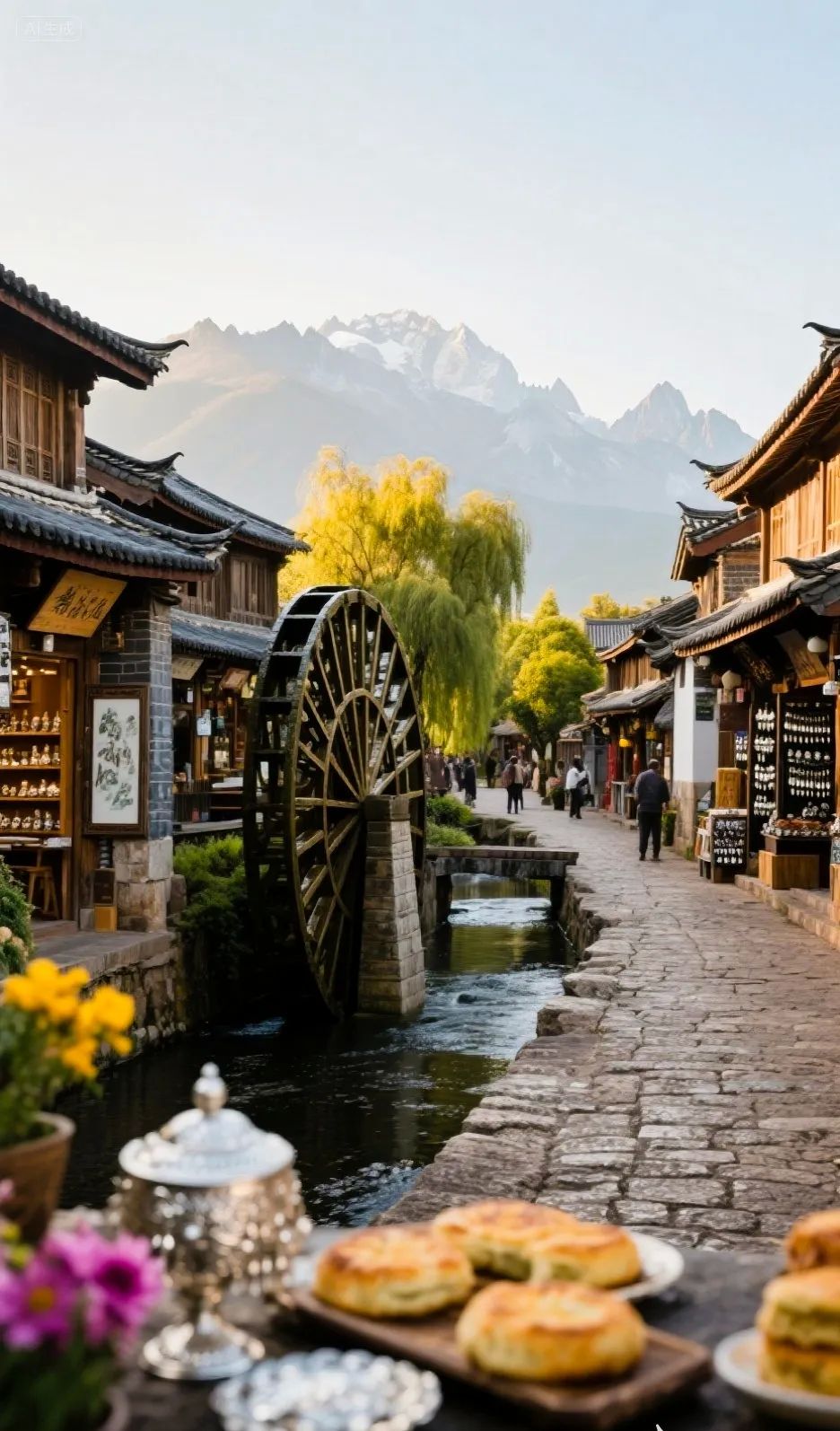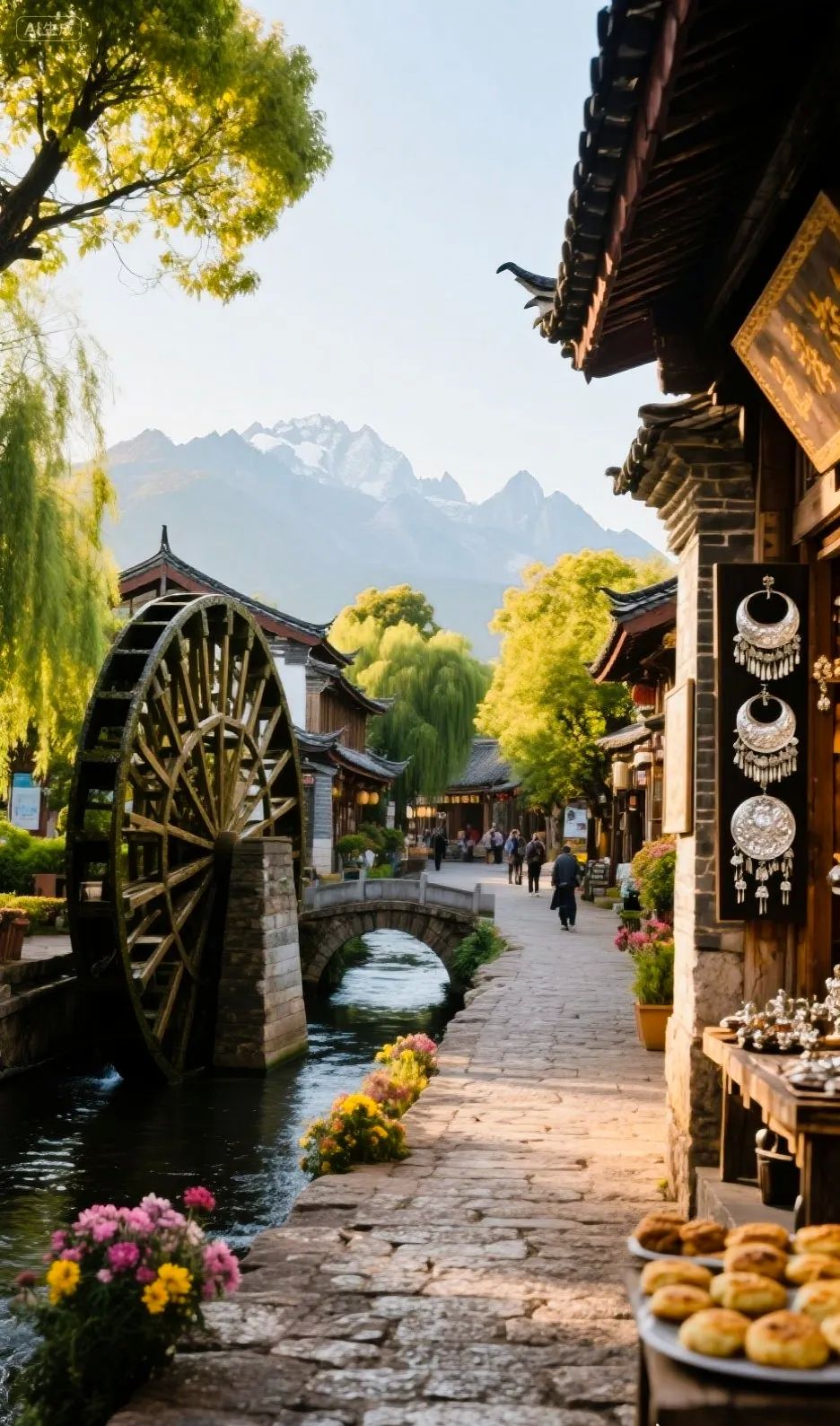 - 丽江古城 :清晨的丽江古城少了喧闹,多了份宁静。从大水车进入,沿着青石板路漫步,欣赏纳西族风格的建筑,木楼青瓦、小桥流水,感受“家家溪水绕户转,户户垂杨赛画画”的景致 。可以逛逛四方街,这是古城的中心,往昔是热闹的贸易集市,如今仍充满生活气息,顺便尝尝现烤的鲜花饼,花香与饼香交融。还能走进深巷里的特色小店,比如手作银饰店,看匠人打造精美的银器,了解纳西族的银饰文化。