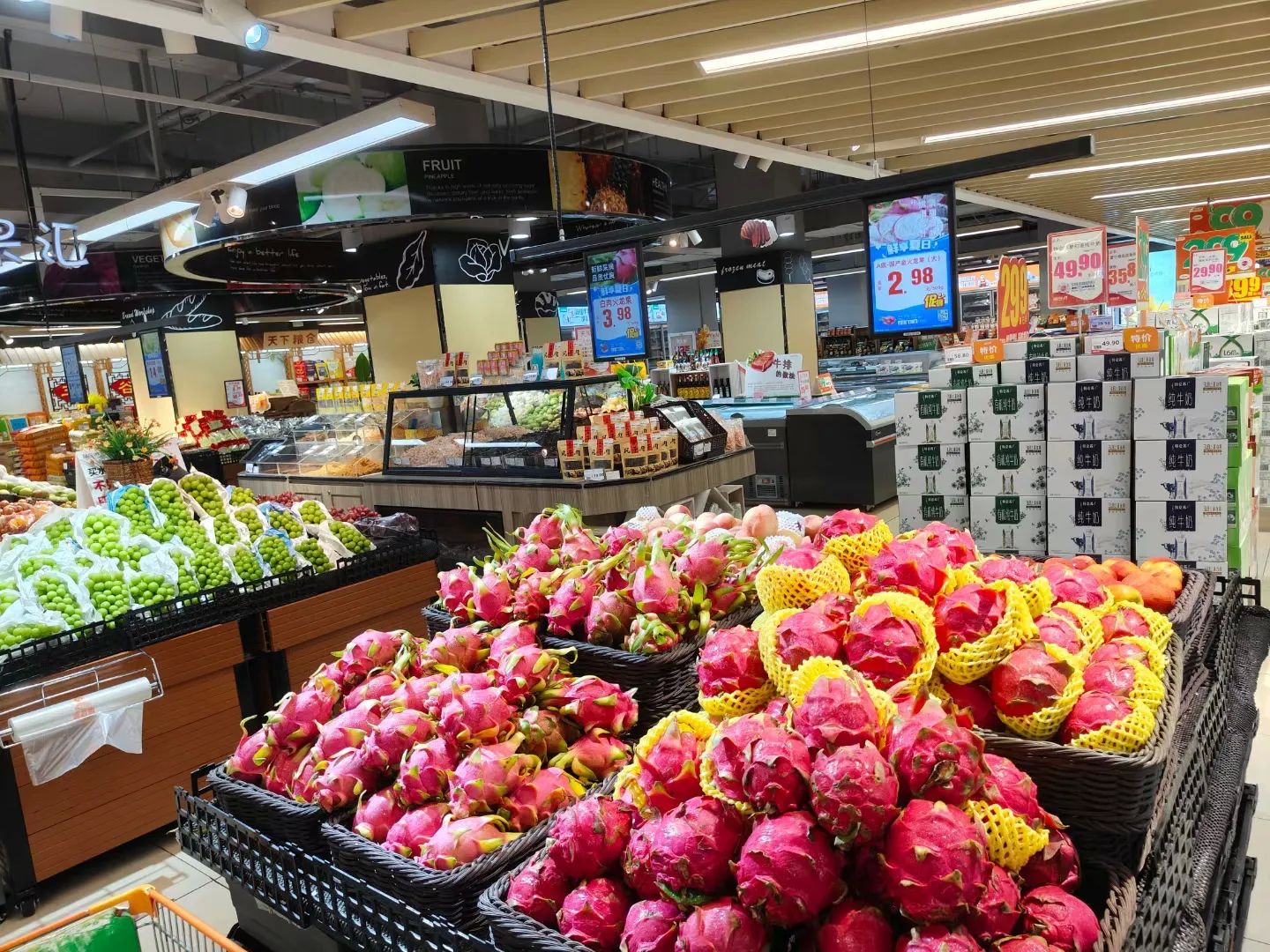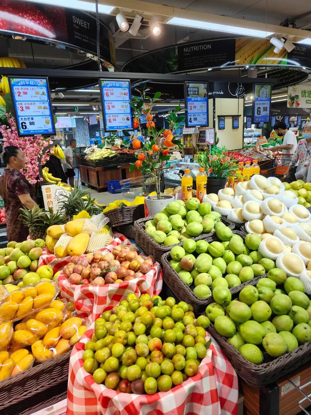 在惠州一家超市买蔬果,发现物价比家里确实便宜些,买了3斤多火龙果、2个柠檬、一斤
