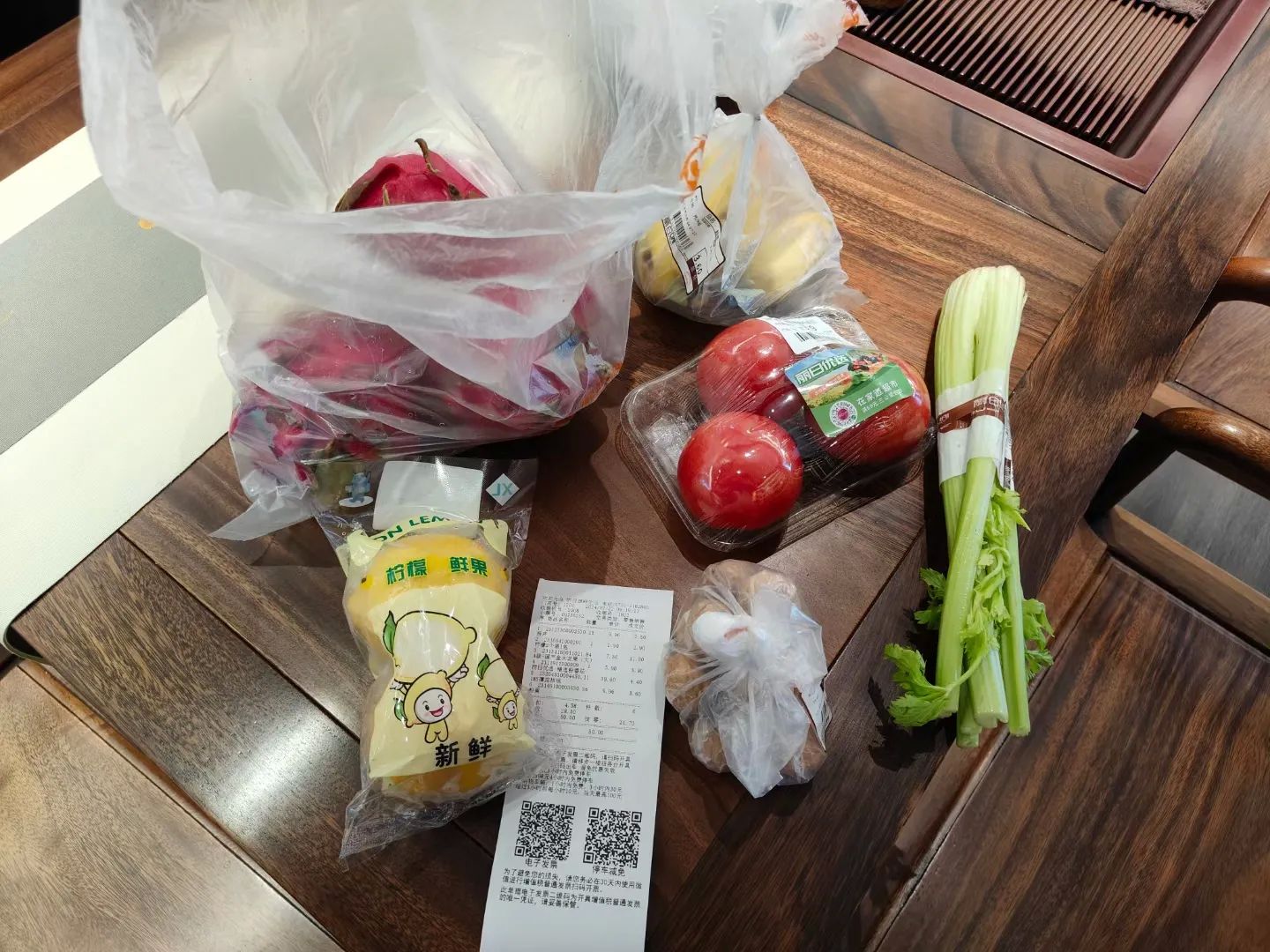 在惠州一家超市买蔬果,发现物价比家里确实便宜些。买了3斤多火龙果、2个柠檬、一斤西芹,一斤西红柿,小粉蕉7两,干核桃2两,总花费28.3元。在去火车站途中,花6.5元买了3瓶水,公交及去深圳火车费共27元。目前约花62元。在外面游玩,别急着赶时间,慢下来,采取少花钱环保的方式去旅游,可以持续长久,甚至永久。今天,与昊崽一起走路约2万步,骑行约23公里。今天花费如下:住宿费78元,水果买了12元一斤的提子12元、甜瓜2.5元一斤4元,黄瓜4元一斤2.3元,毛桃4.8元一斤3.8元。公交2元,租车骑40元,科膳坊素食自助餐39元,总共花费约182元。