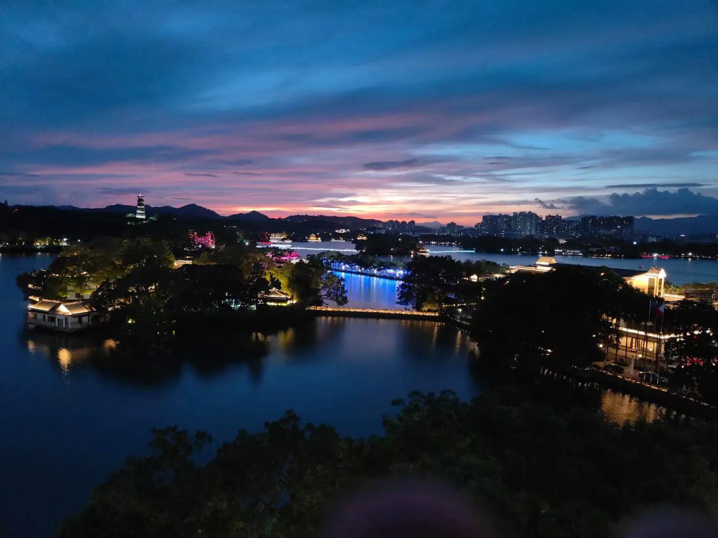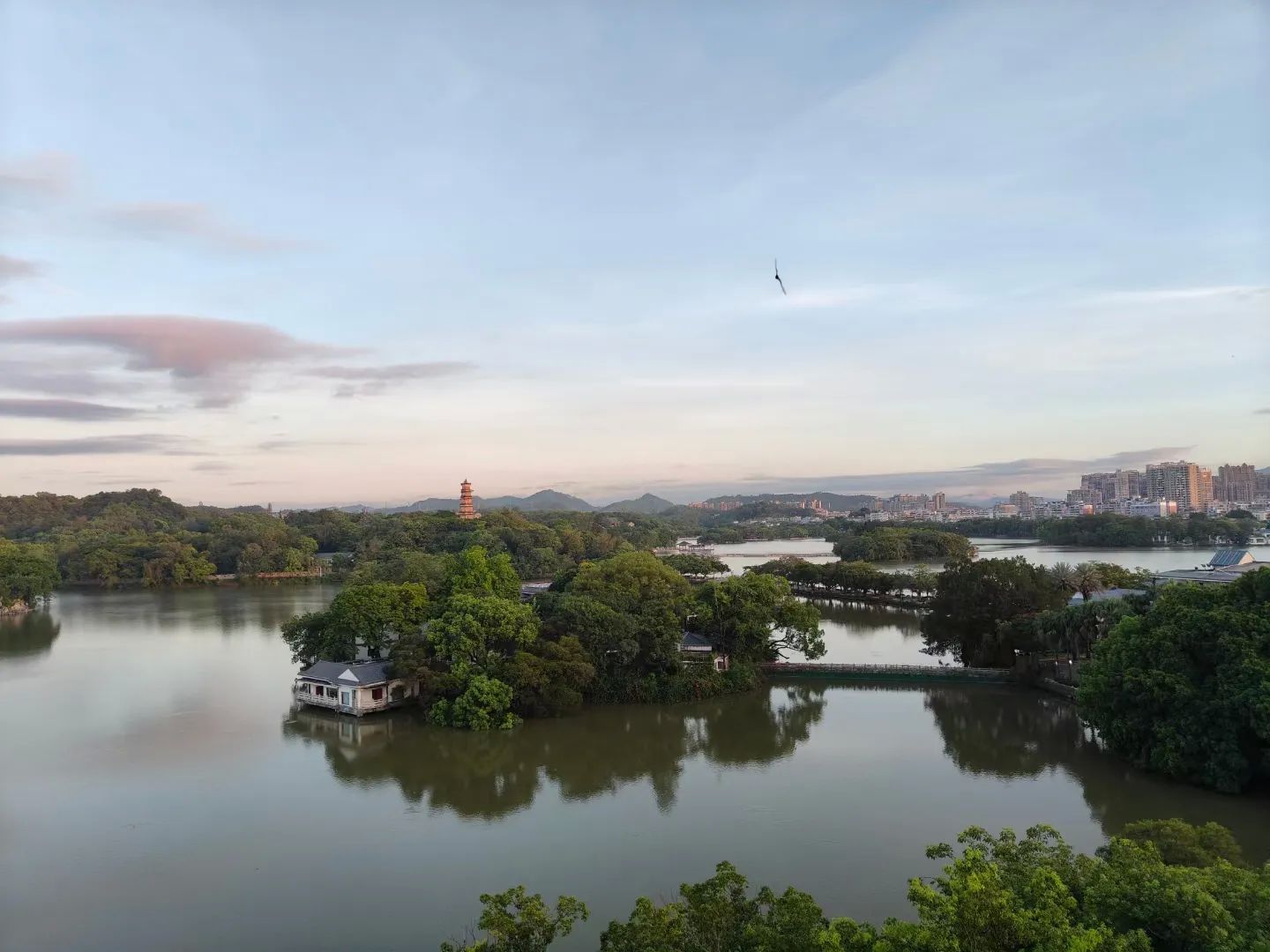 一觉睡得天光,身体得到很好的恢复。晨便时,听到昊崽梦中发出哈哈哈的笑声,心底的喜悦之情冒了出来。打开房门,在走廊上走了8、9步,来到窗下,将手机伸出窗外,拍对面西湖晨景,适逢一时大鸟飞过,定格。躺在床上,简单规划深圳之玩、住、吃、行,一看看价格,心里有数了。平均200元一天也行。计划在深圳湾一带游玩,观看一场奥特曼主题展(昊崽想必很喜欢)。可惜我想看的英文原版音乐剧《剧场魅影》价格昂贵560元以下的票早已售完,算了。去广州时再看看有无机会观看相似音乐剧。