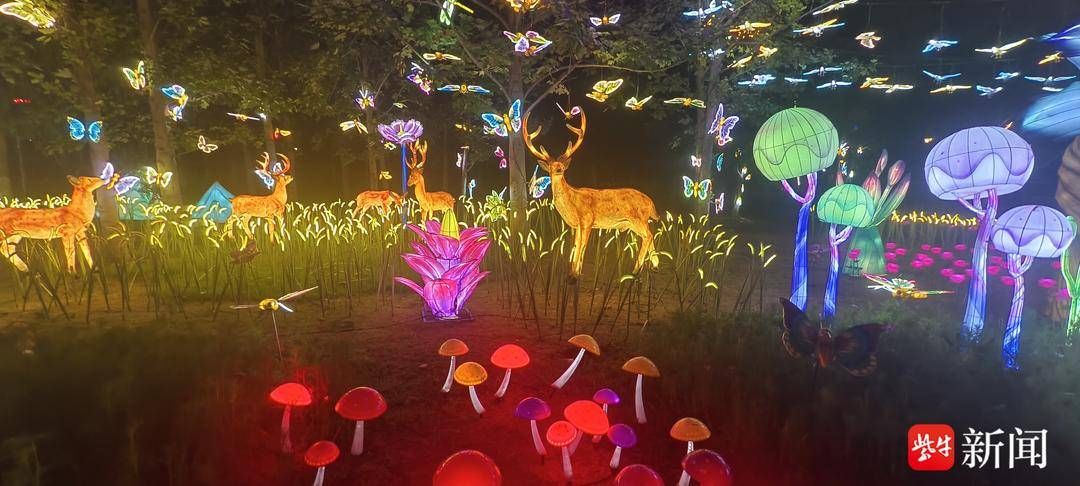 踏入园区,如同置身光影交织的梦幻世界,五颜六色的灯组,造型独特、光彩夺目。昆虫世界里,造型逼真的昆虫在灯光映照下栩栩如生;魔幻长廊里,变幻莫测的灯光交织,仿佛穿越时空隧道;金色树木与五彩草丛相映衬、造型逼真的梅花鹿在树下休憩,巨型蘑菇分布在道路两边......各种奇特造型的灯组,让人仿佛进入童话故事里。