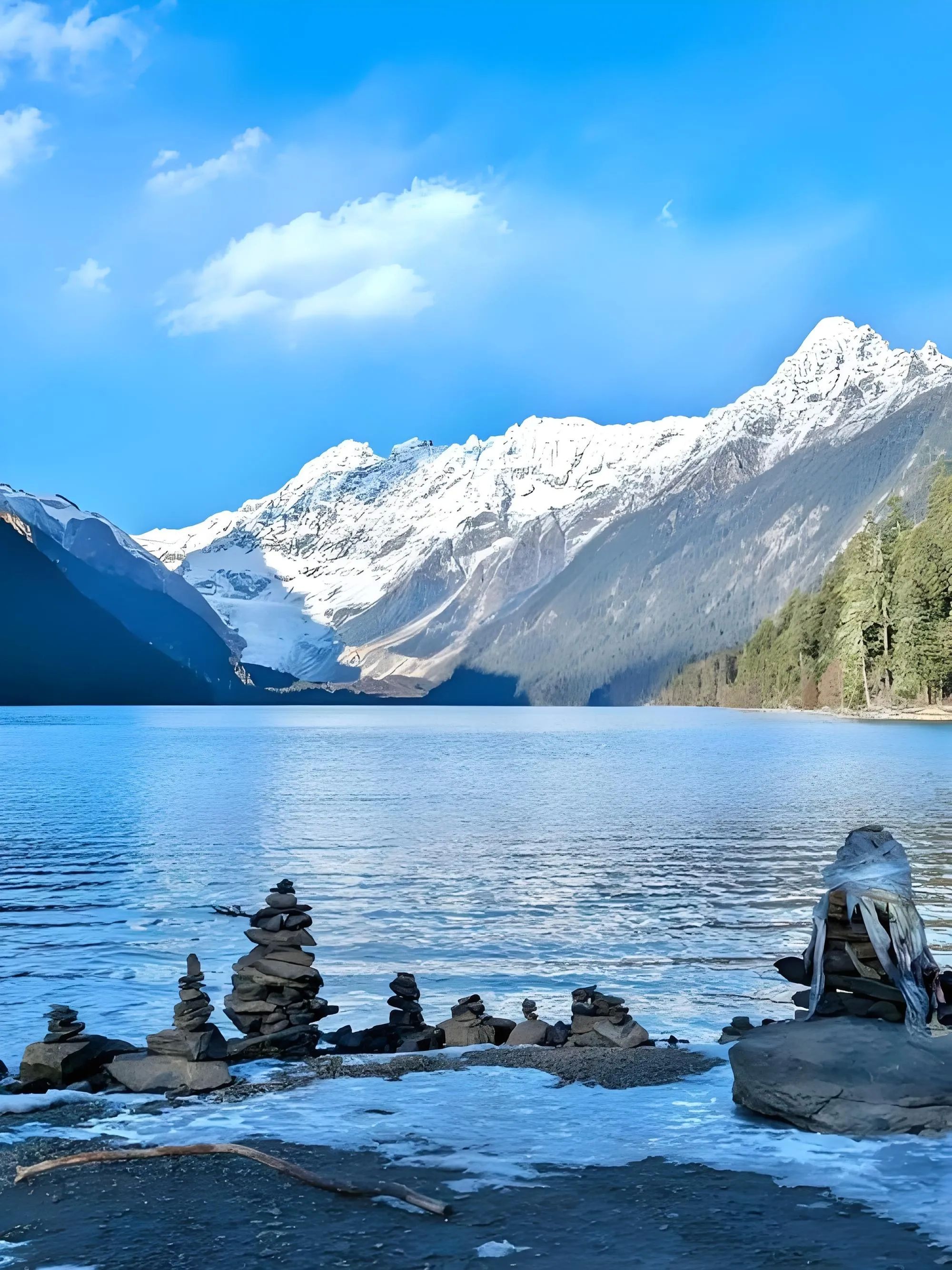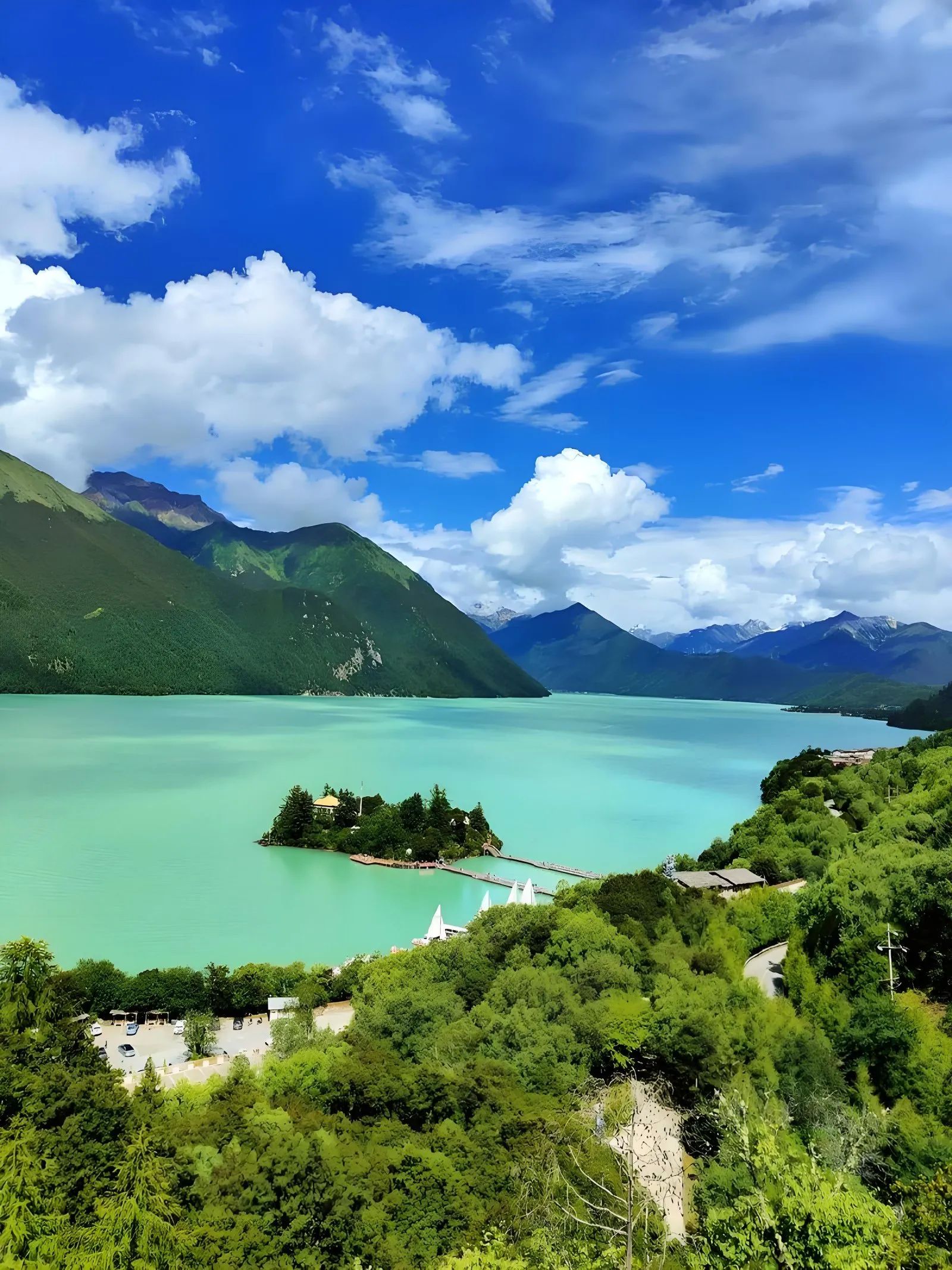 - 上午:从拉萨出发,沿拉林高速前往巴松措,这是藏传佛教的圣湖,湖水碧绿,周围雪山环绕,风景如画。可以乘坐游船游览湖心岛,参观岛上的寺庙和千年古树。