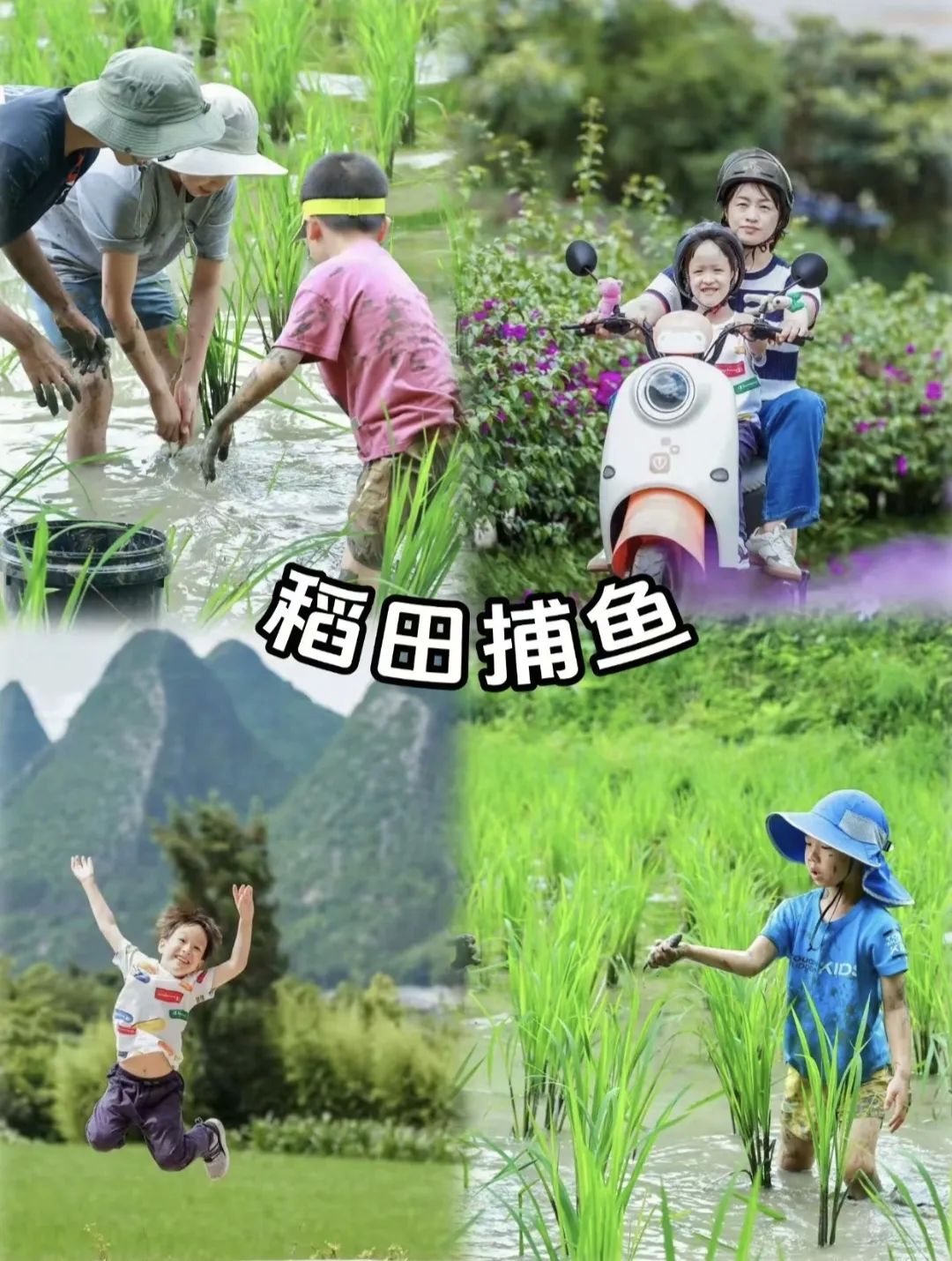 玩点: 租一辆亲子自行车/电瓶车,穿梭在八卦田、纳灰布依寨之间。看稻田绿浪翻滚,远眺如“将军”般矗立的奇特山峰。带娃体验: 稻田捕鱼/捉鸭 (超欢乐!),参观布依族扎染/织布作坊,亲手做个小纪念品。