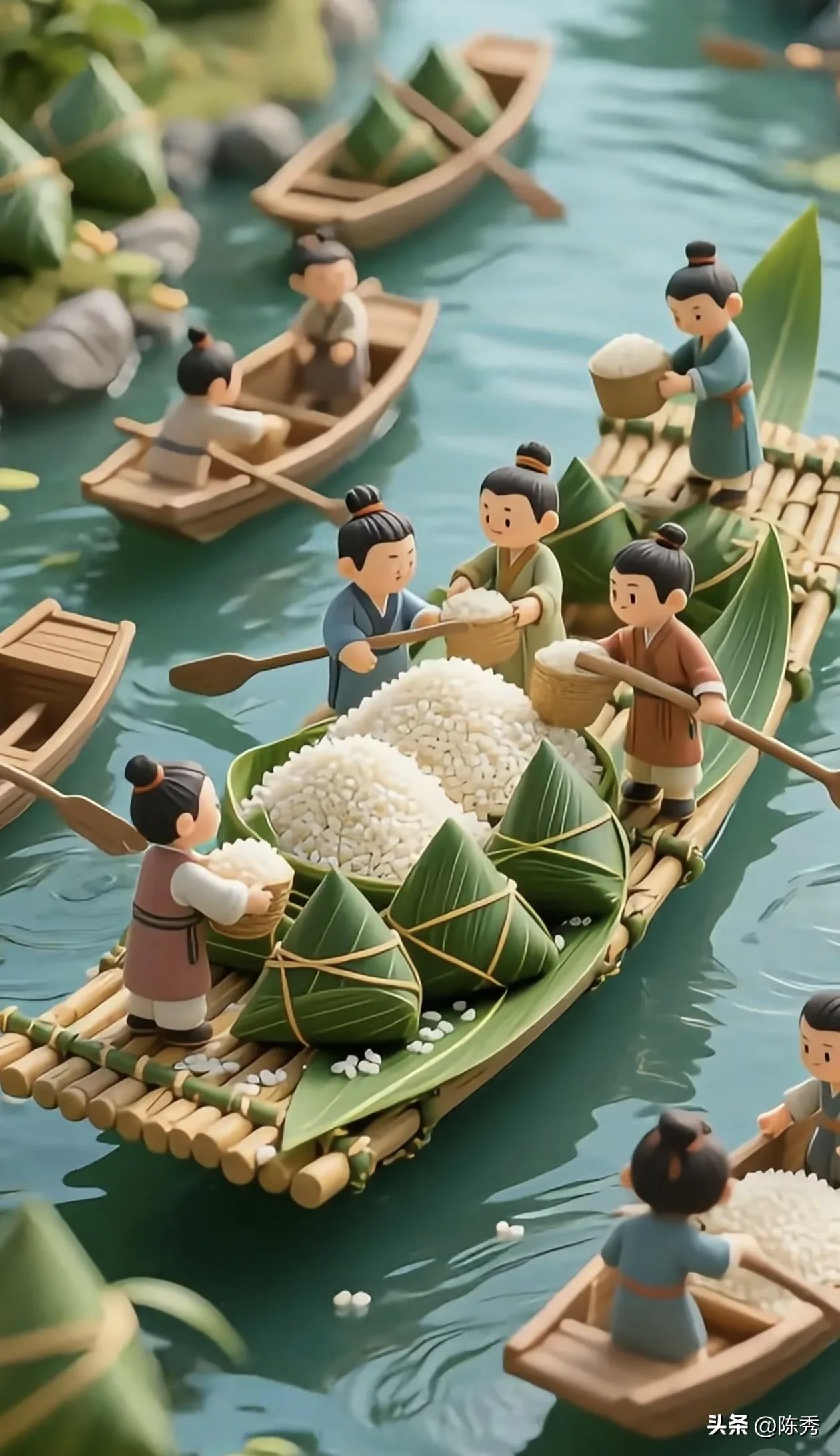 端午节最热闹的活动之一就是赛龙舟啦!每年这个时候,各地都会举办大型龙舟比赛,鼓声震天,观众欢呼。龙舟象征着驱邪避灾,也寓意团结拼搏,特别适合一家人去看哦!比如湖南汨罗江的龙舟赛就超级有名,有机会一定要去感受一下。