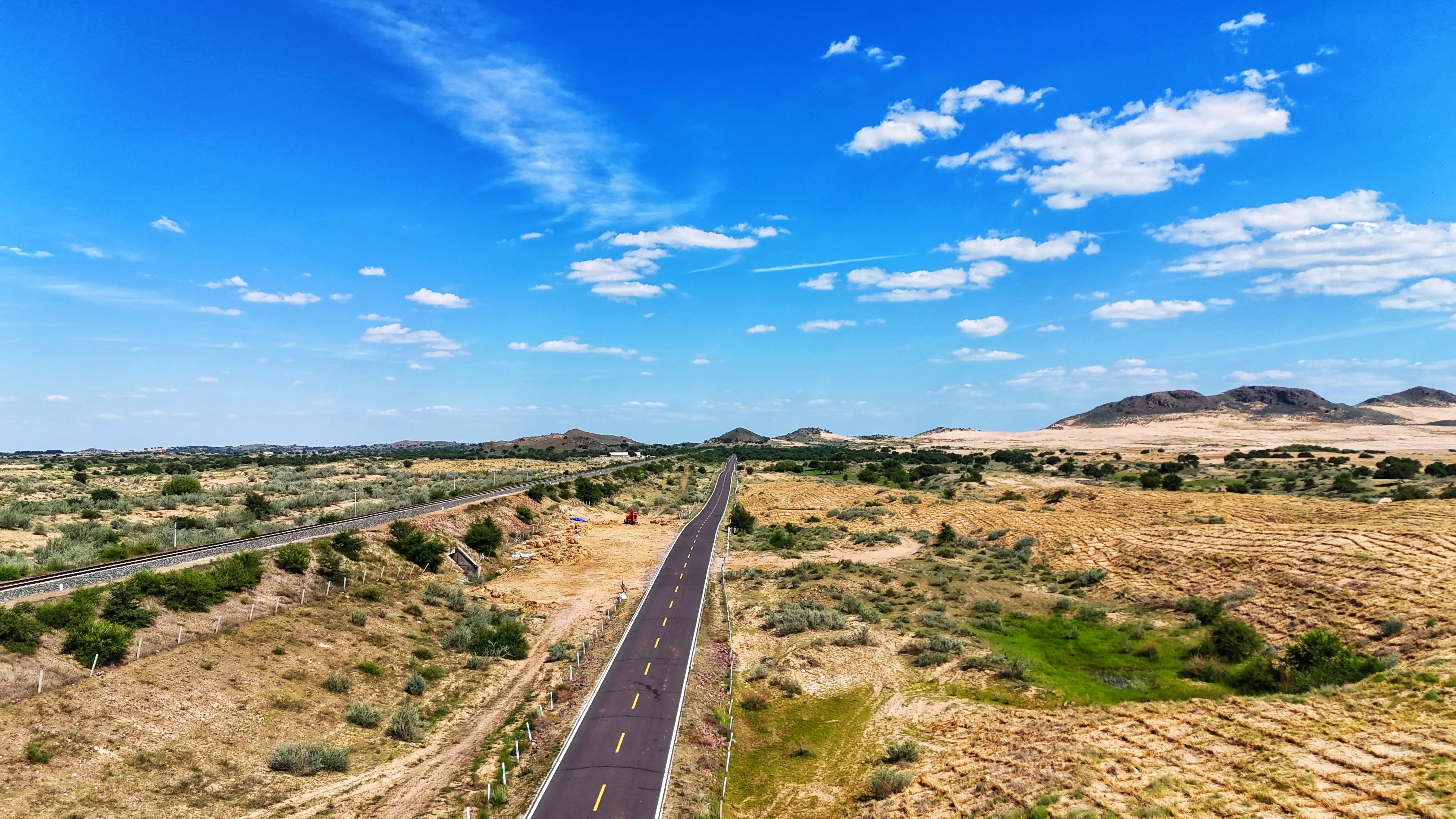 乌白公路起于翁牛特旗的乌丹镇,终点是白音套海苏木,被评为“全国十大最美农村路”。自驾乌白公路,可以看到与草原自驾完全不同的风光,一条公路在绿洲和荒漠中穿过,是一种很不错的自驾体验。(图12-15)