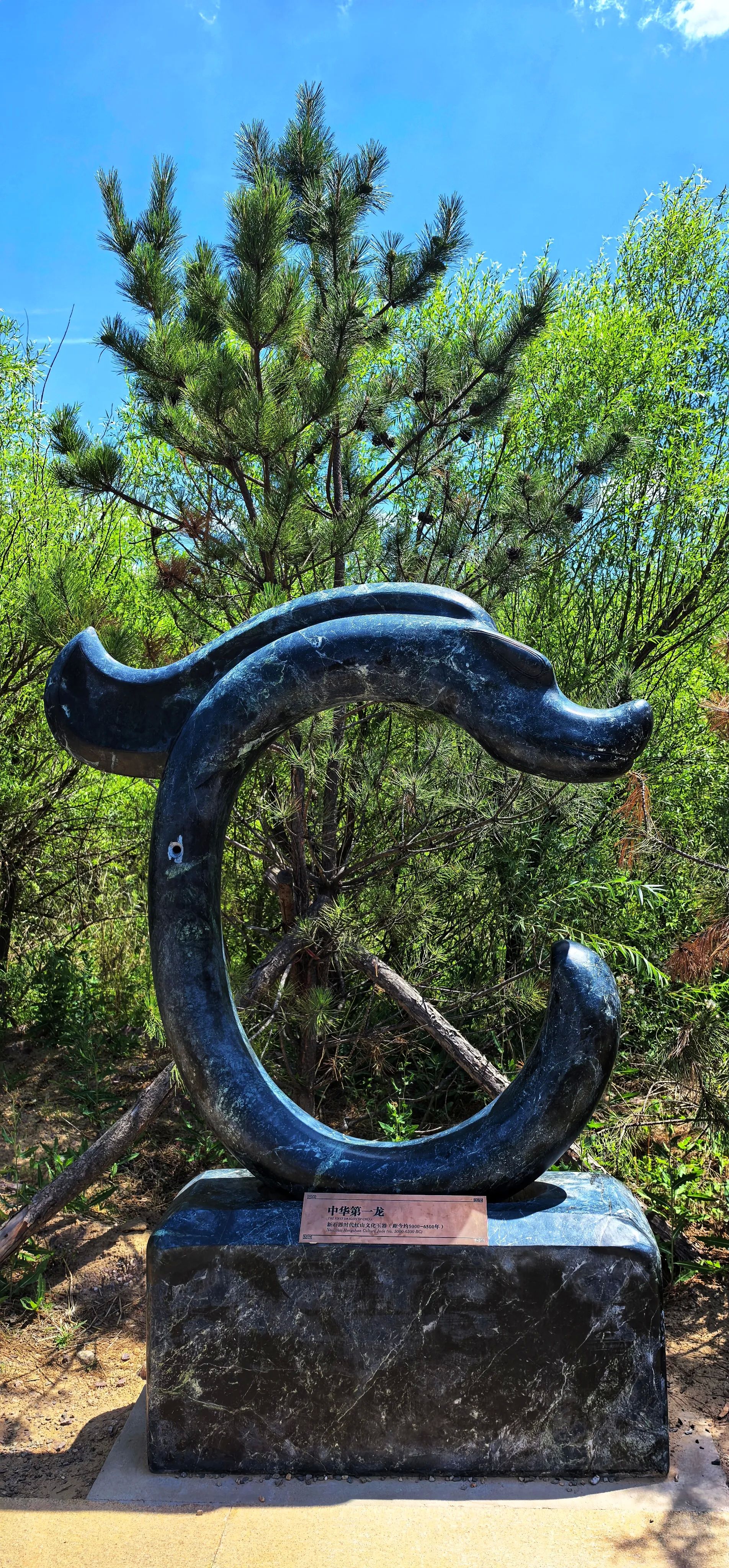 1971年秋,景区所在地的赛沁塔拉村的一位村民在田里劳作时偶然发现了“碧玉龙”(图11)。玉龙高26厘米,呈“C”形,由墨绿色软玉雕琢而成,其造型融合猪首、马鬃、蛇身等特征,距今约5000-6500年前,现已被中国国家博物馆收藏。