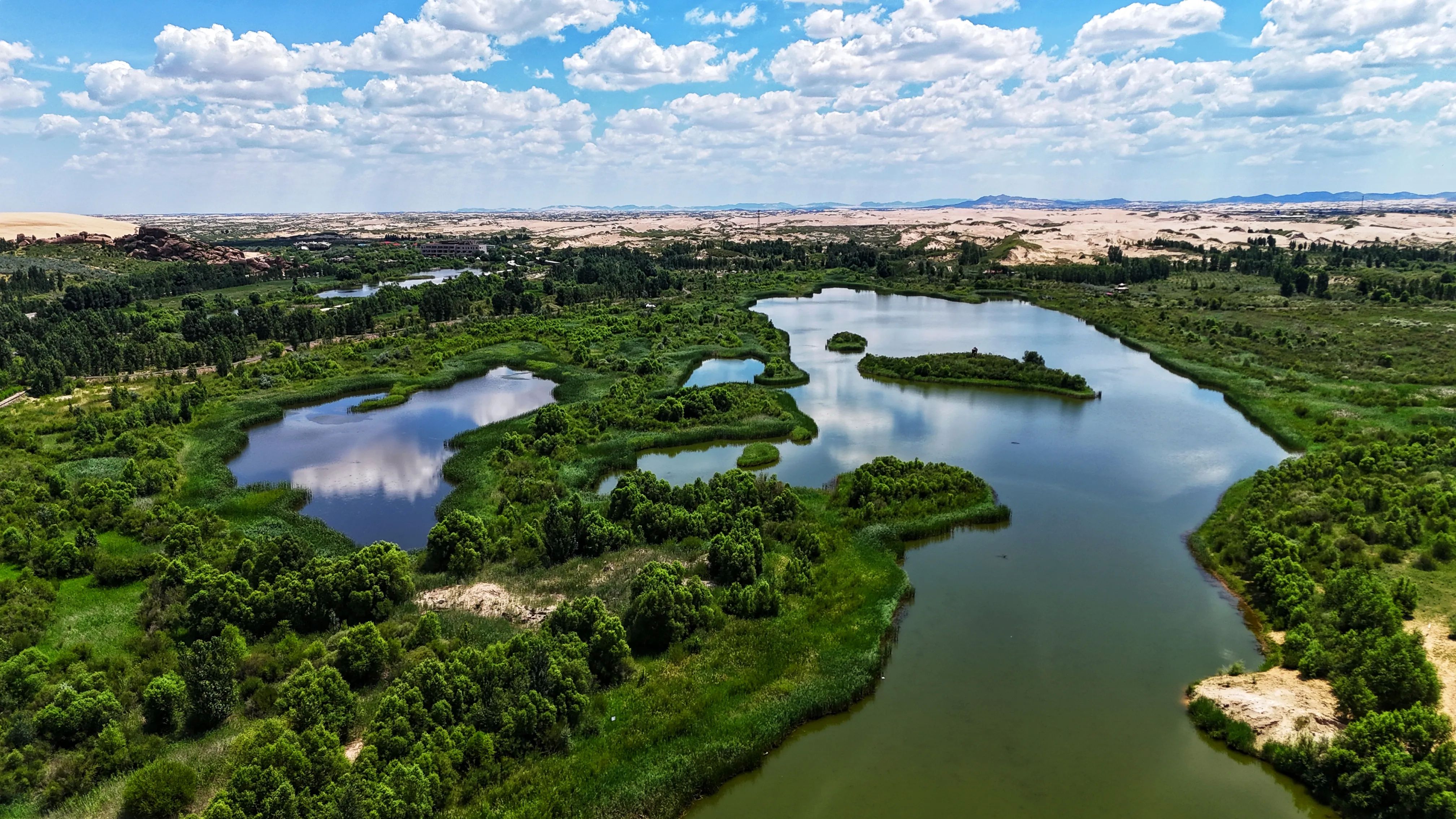 玉龙沙湖距离翁牛特旗约半小时车程,是一个集沙漠、湖泊、湿地、草甸于一体的国家AAAA级旅游景区。因在此地出土的新石器时代红山文化标志物“中华第一龙”而闻名,景区也由此得名“玉龙沙湖”。(图1-10)