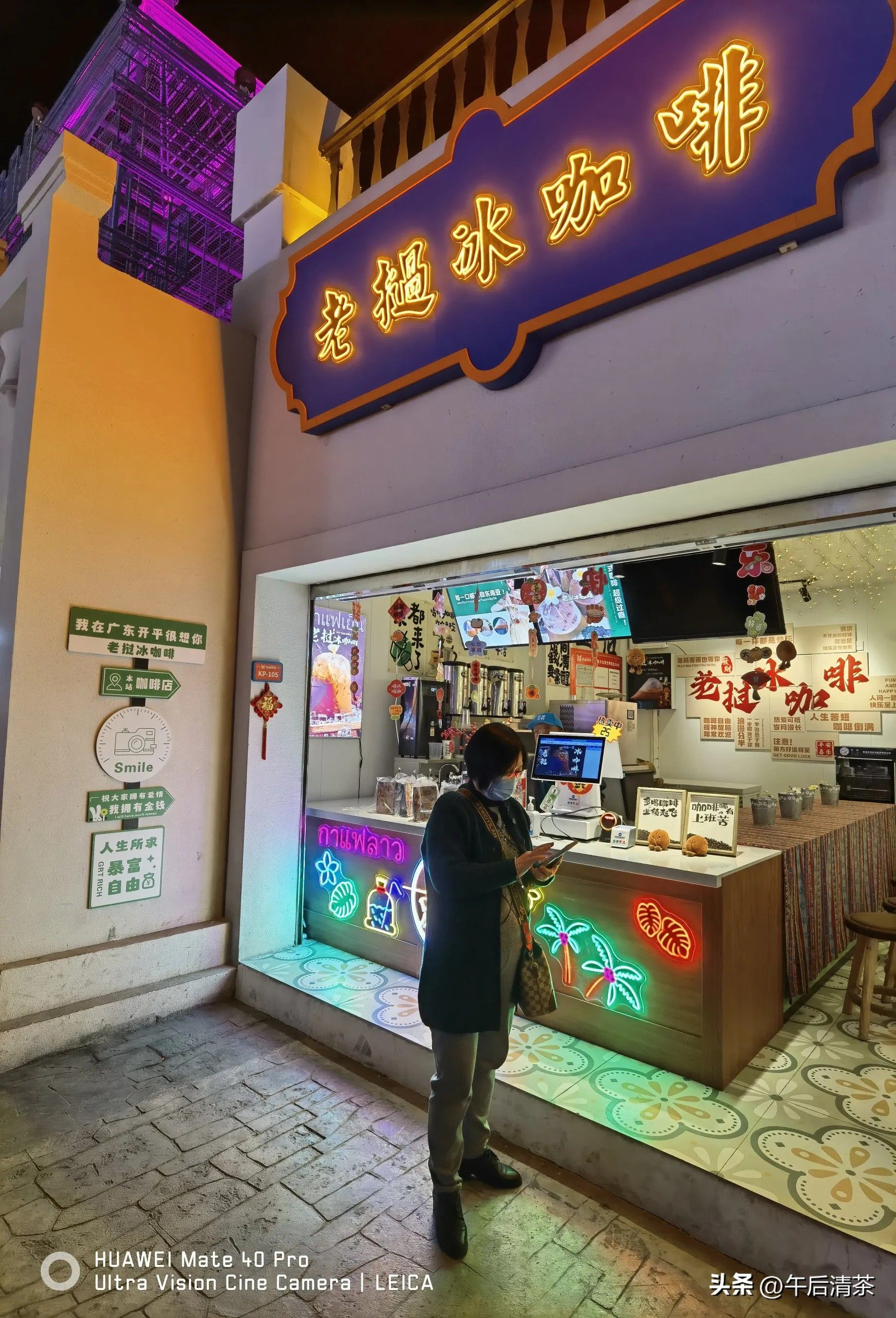 昨天(乙巳蛇年年十三)的晚上,太太下班后与她一起来到开平不夜城“梦回开平•侨海华韵街区”凑热闹,进入街区后先在《人鱼绮梦》景点观看“美人鱼”表演,然后逆时针在街区游览。其间购买了花边蛋挞、锅盖、还有老挝冰咖啡品尝,原来还想买恩平烧饼,只是觉得比平时小贵就罢了。