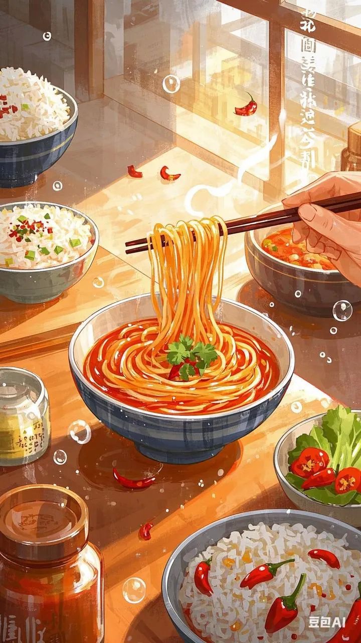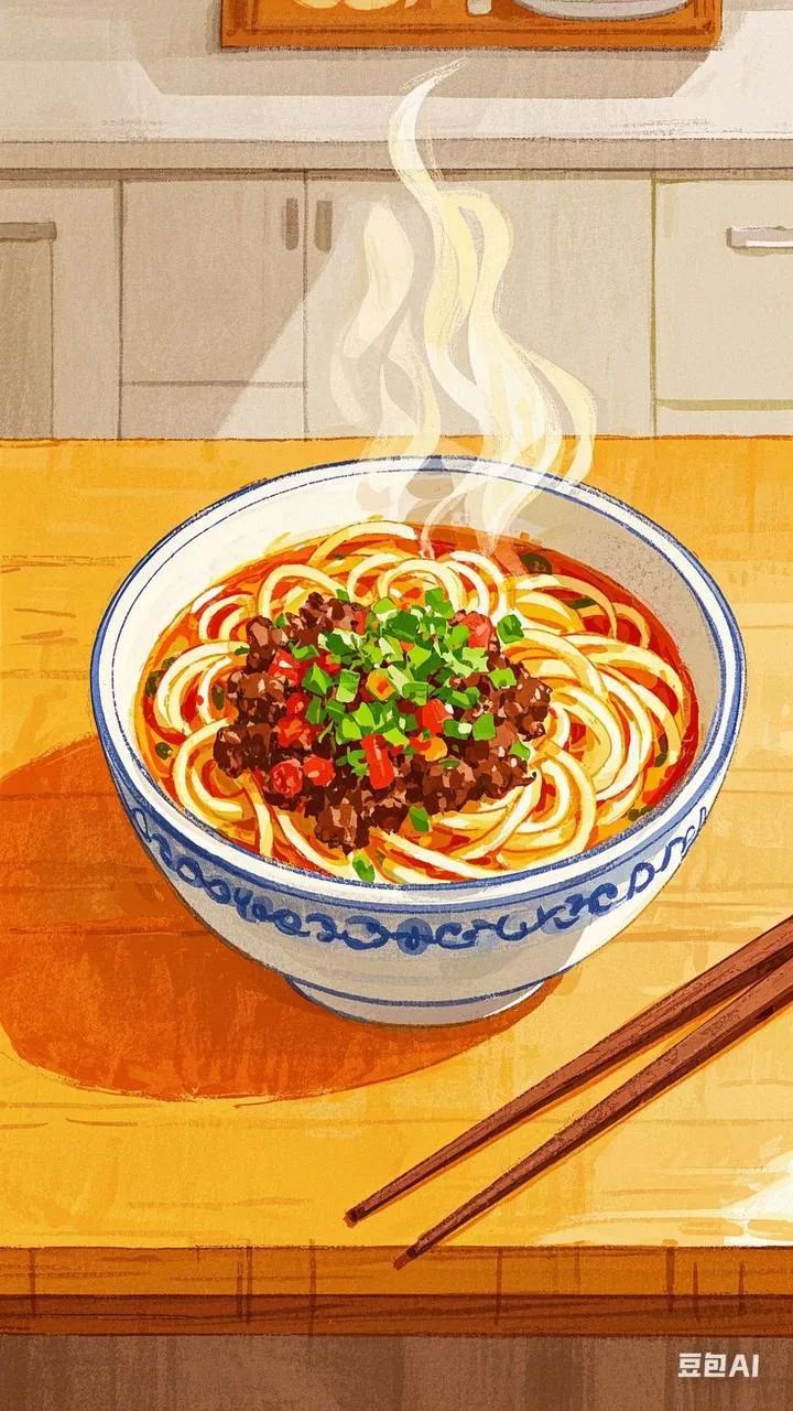 -重庆小面:豌杂面是经典,黏糊酱料裹满面条。