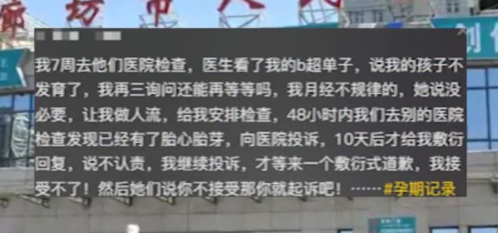 河北廊坊,女子怀孕七周去做产检,却被告知未见胎芽,建议立刻做人流!