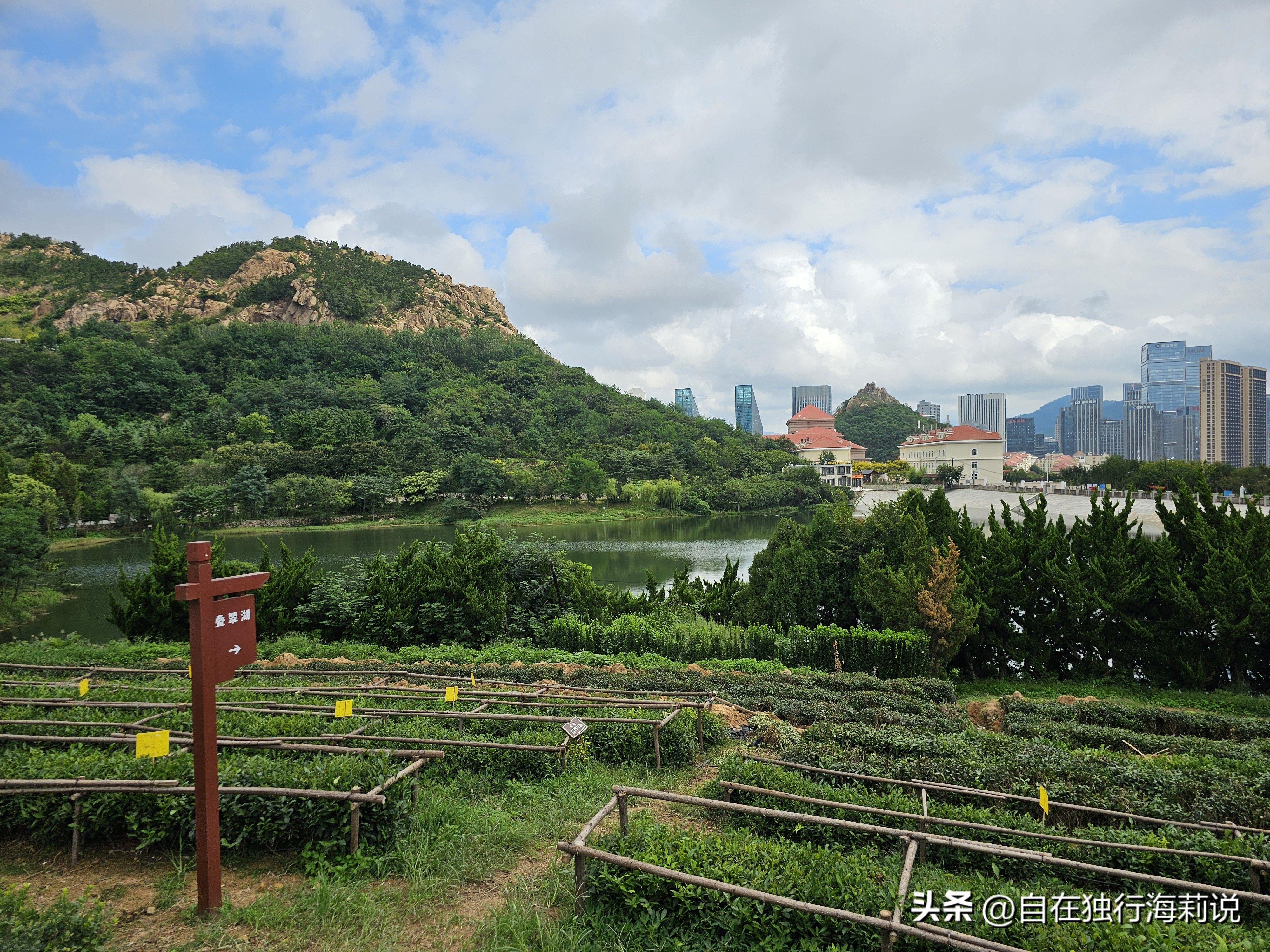 继续往前走,还有一个叠翠湖,在茶园边上。这里有半坡茶树,像一片片梯田,层层叠叠,绿油油的,叠翠,大概就是这个意思吧。