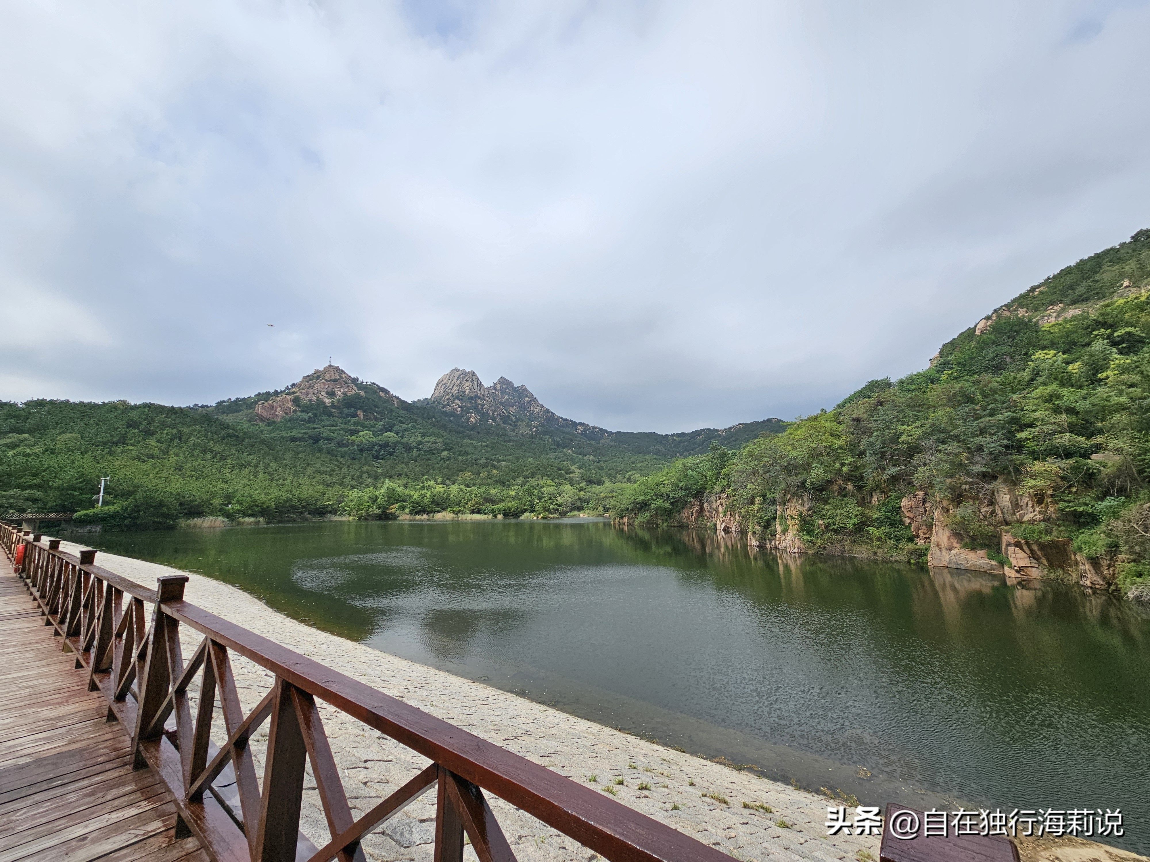 图十三,山海通廊,廊头北连浮山后,廊头南为浮山前可看海。然后穿过亭子从木栈道下来,便是图十六的花溪湖。山色青翠,湖水碧绿,纯净幽然,若不是围栏上刚刚刷了漆还未干,真想趴在栏面上望湖出神睁着眼做个飘飘的美梦。