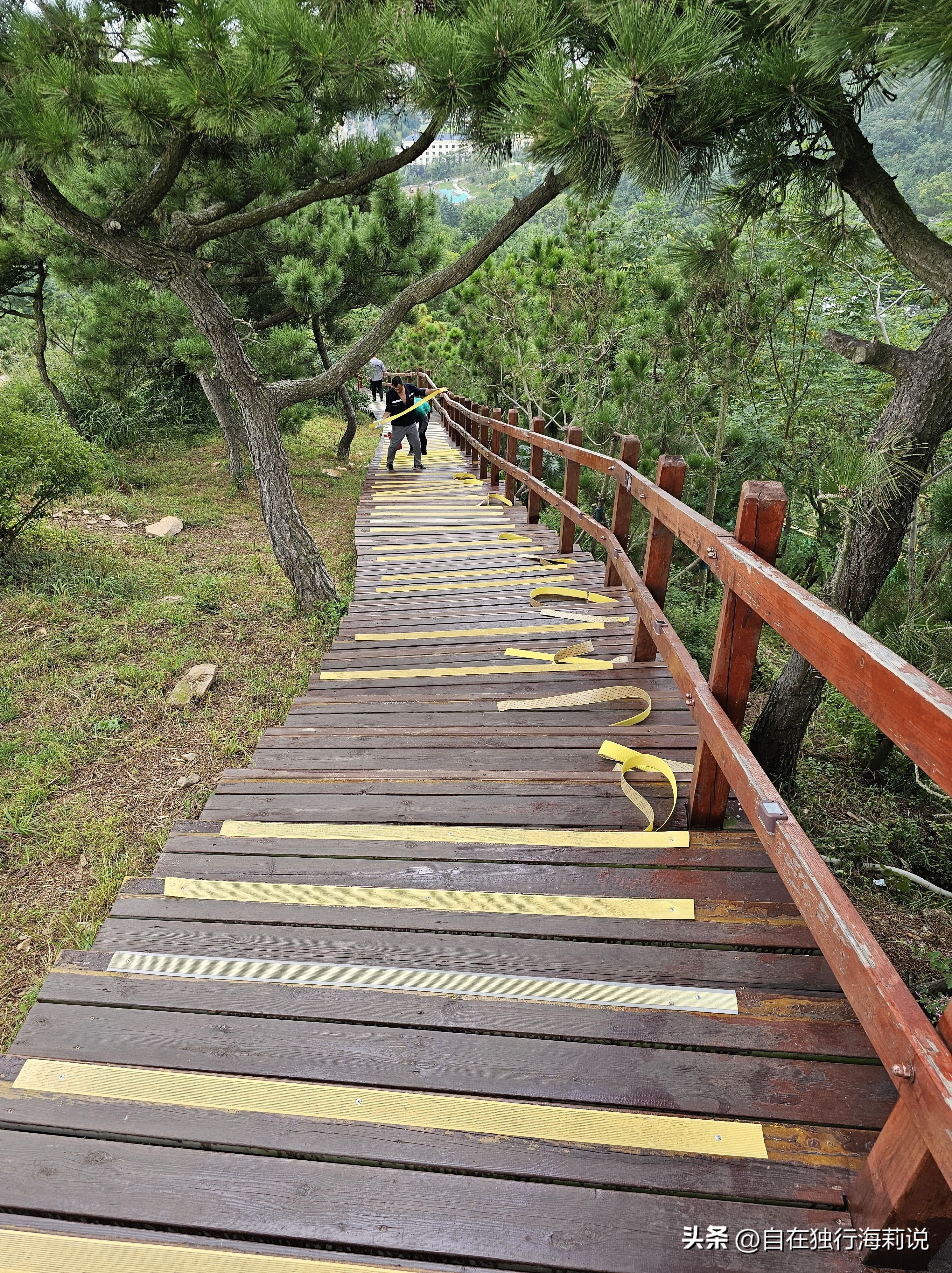 图七,原路下山,工作人员正在给木栈道更换防滑贴带,拿着清理工具的环卫工随处可见,巡逻人员也不少。虽非周末游客很少,但景区的管理配套都很成熟,若非自己想不开要跳崖,安全感绝对可以拉满。