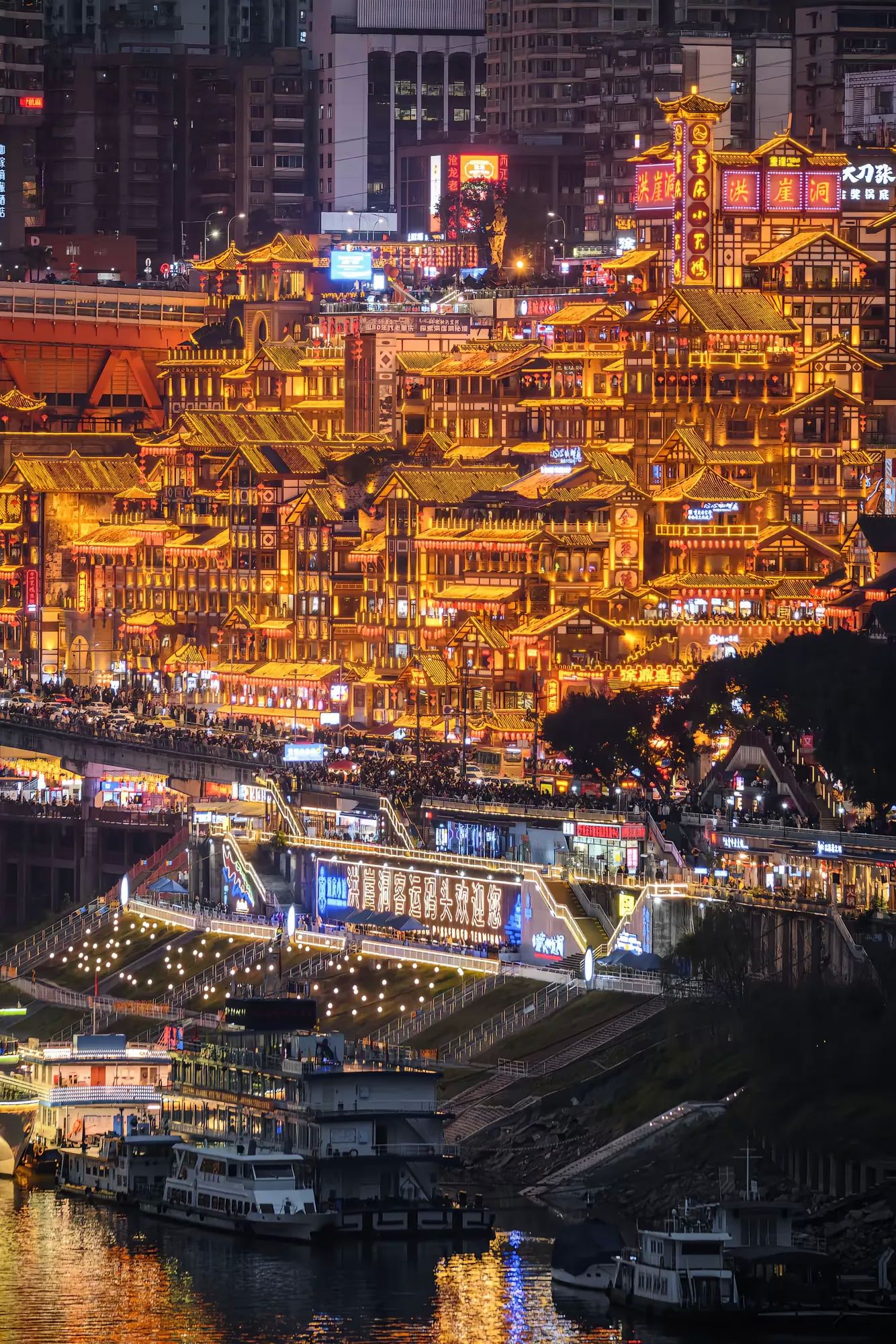 - 免费景点:洪崖洞夜景(免费拍摄点:千厮门大桥)、李子坝穿楼轻轨(2元体验)、白象居充满复古胶片感。