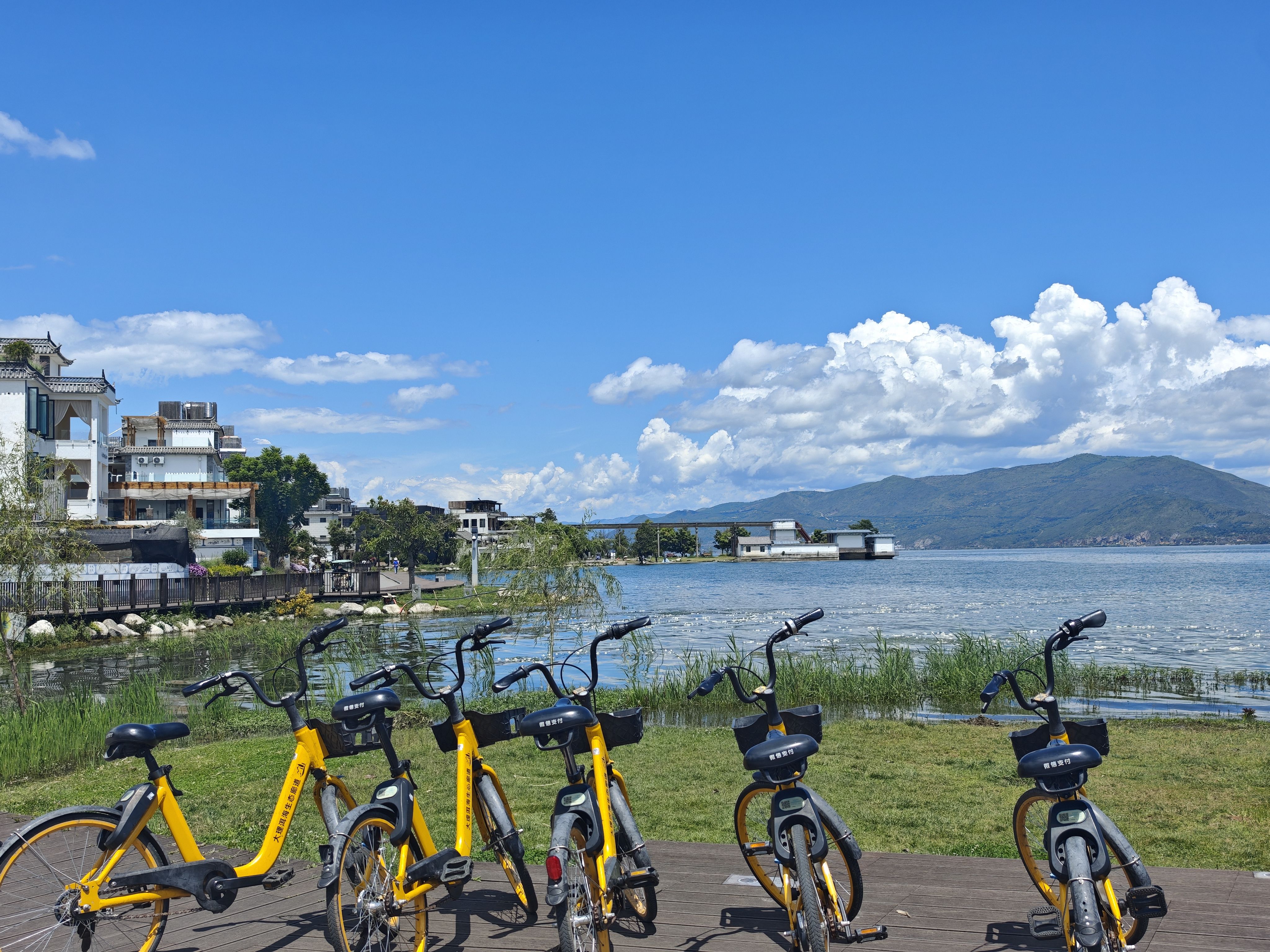 D2,7.30分早餐,9点出发打车去昆明站,坐10.09-12.11动车到大理,住大理莫溪客舍(三圣岛);中餐杜记白族小吃坊(现场炒菜,价格实惠,味道比较适合大众),饭后午休,15.30分大理洱海海西(三圣岛—龙龛码头—才村—网红S湾),出行电动车为主(60押金1小时15元),晚饭在三圣岛附近,饭后散步回莫溪客舍休息(沿途夜景和氛围很好)。