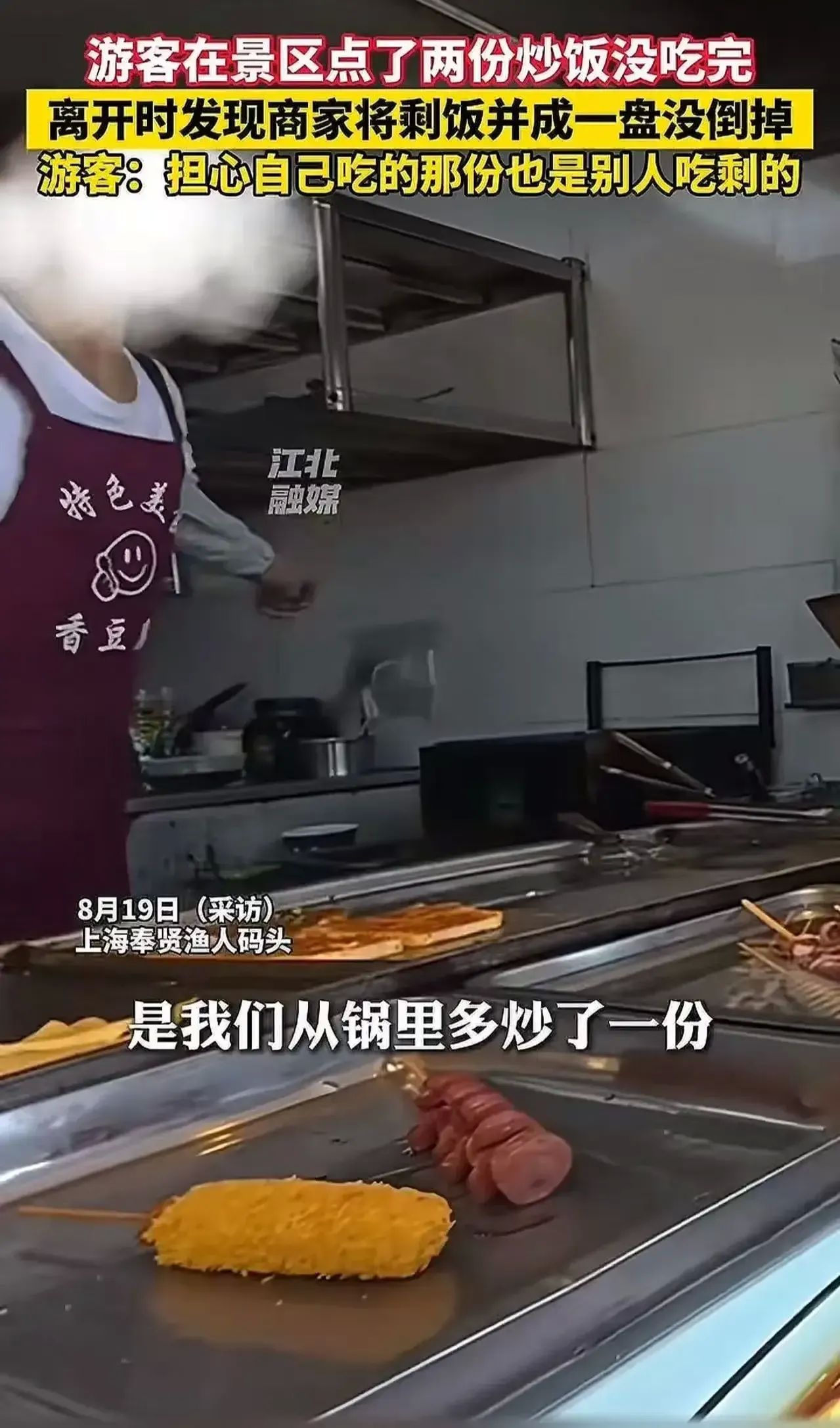 上海奉贤的ICON渔人码头,又一次让人忍不住想吐槽:这到底是旅游景点,还是“暗黑厨房”?一位游客点了两份炒饭,吃到一半就觉得不太对劲,结果离开时发现,商家竟然把剩下的饭拼成一盘,似乎打算“再卖出去”。这让人不禁心生疑问:他们到底是在“节约”还是在“偷工减料”?更令人担忧的是,游客的直觉告诉他们:“难不成这饭不是自己吃的那份,而是别人吃剩的?”这不仅关系到食品安全,更触动了每个消费者的底线。