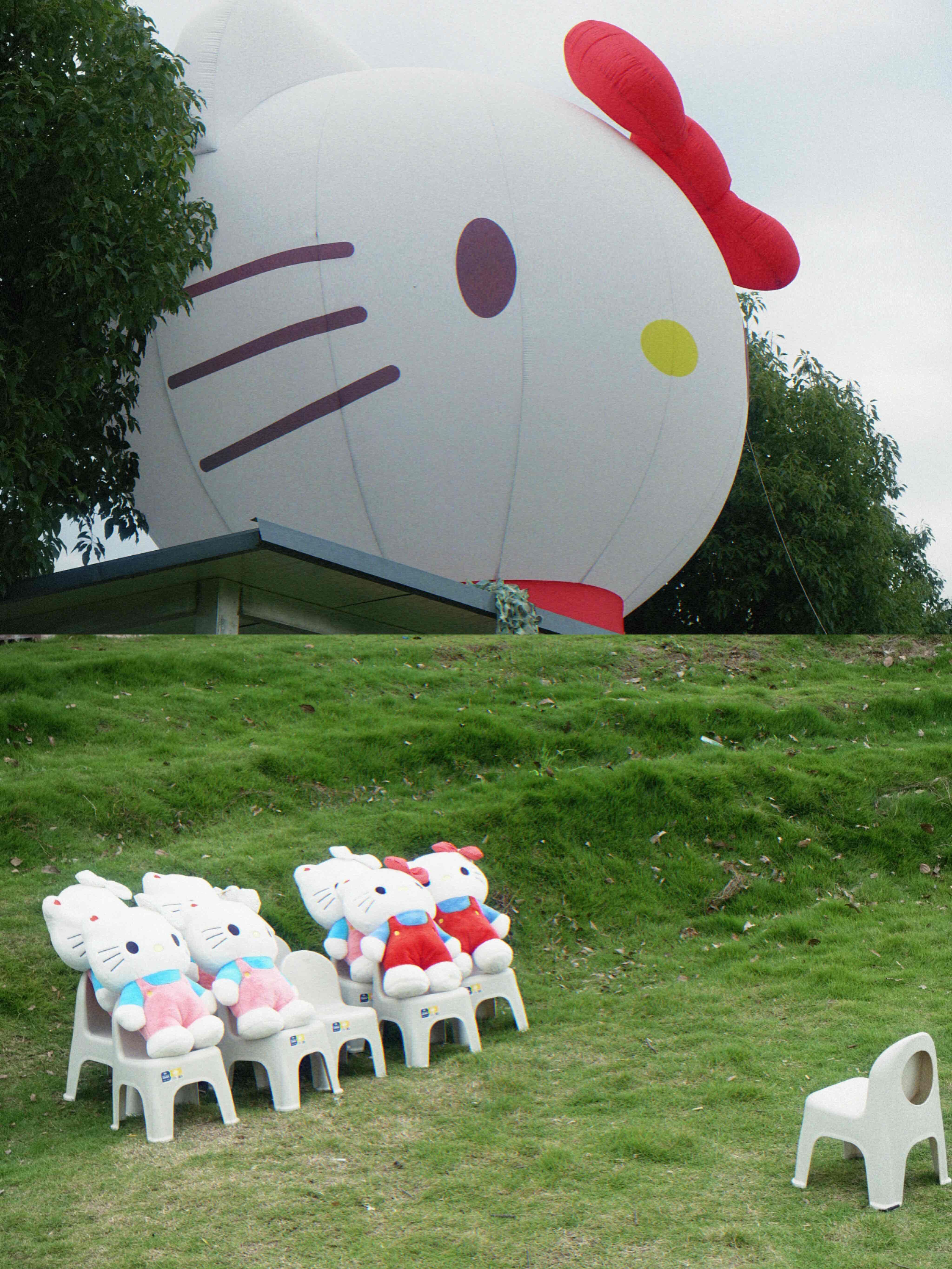 相比于那些人挤人的热门景点,仙客岭庄园的Hello Kitty区域显得格外宁静。巨大的Kitty充气头像下,你可以慢慢拍照,不用着急 山坡上的Kitty飞机,周围绿植环绕,仿佛是Kitty们的秘密基地,在这里拍照,有一种独享秘境的感觉。