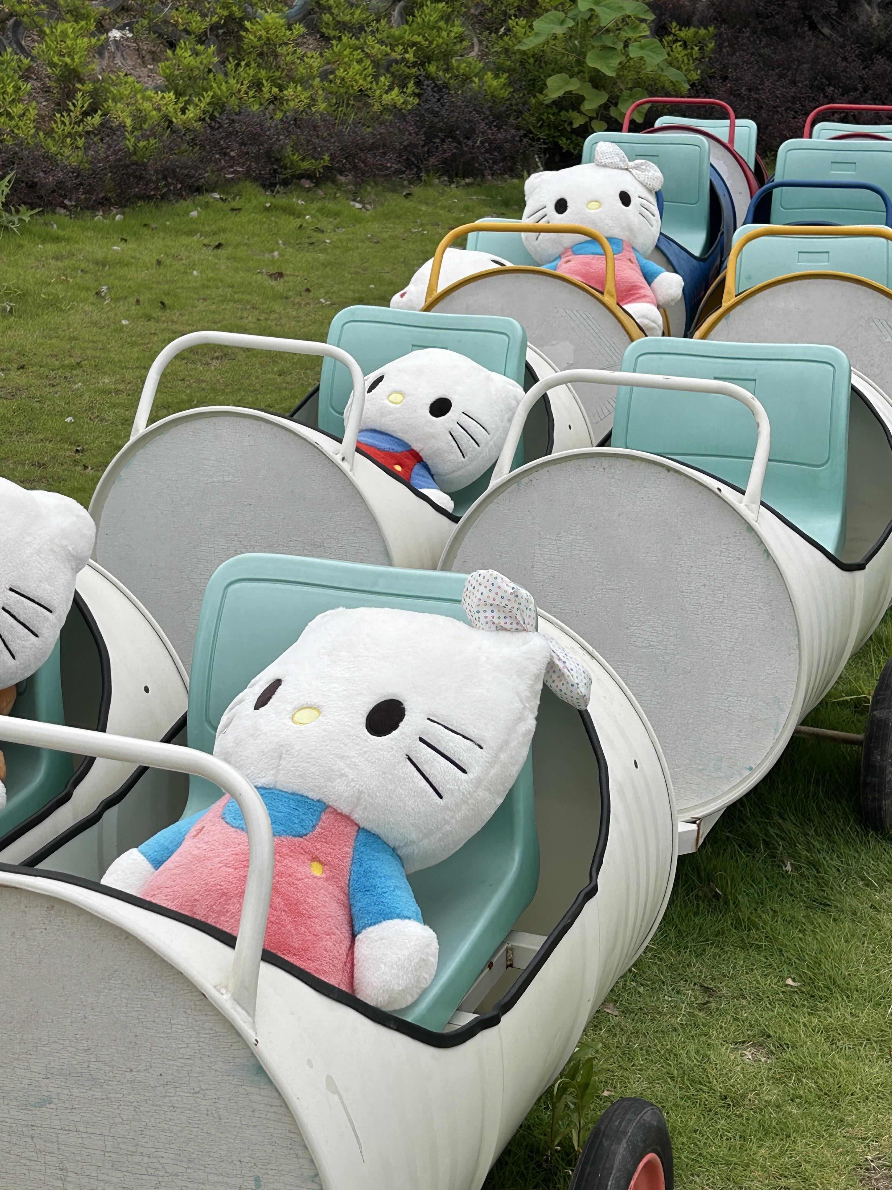 粉色毛绒车和毛绒小屋隐藏在庄园的一角,很少有游客知道,你可以在这里尽情摆拍,不用担心有人入镜。Hello Kitty小火车区域,在非高峰时段,你可以慢慢欣赏这些可爱的布置,感受这份独有的童趣。