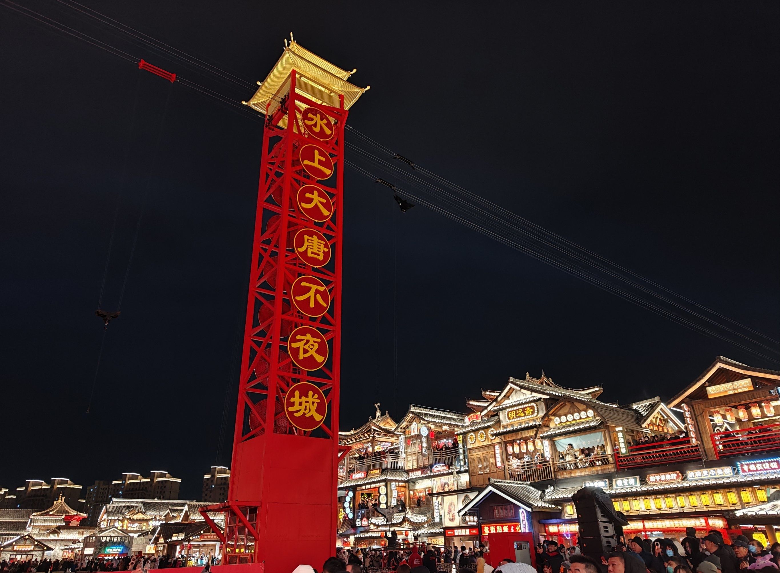 春节来这里确实也是个不错的选择,新年氛围浓烈,有一种盛世大唐的感觉,号称水上大唐不夜城,跟西安的大唐不夜城遥相呼应,也为这新年喝彩,那就蛇年巳巳如意吧。