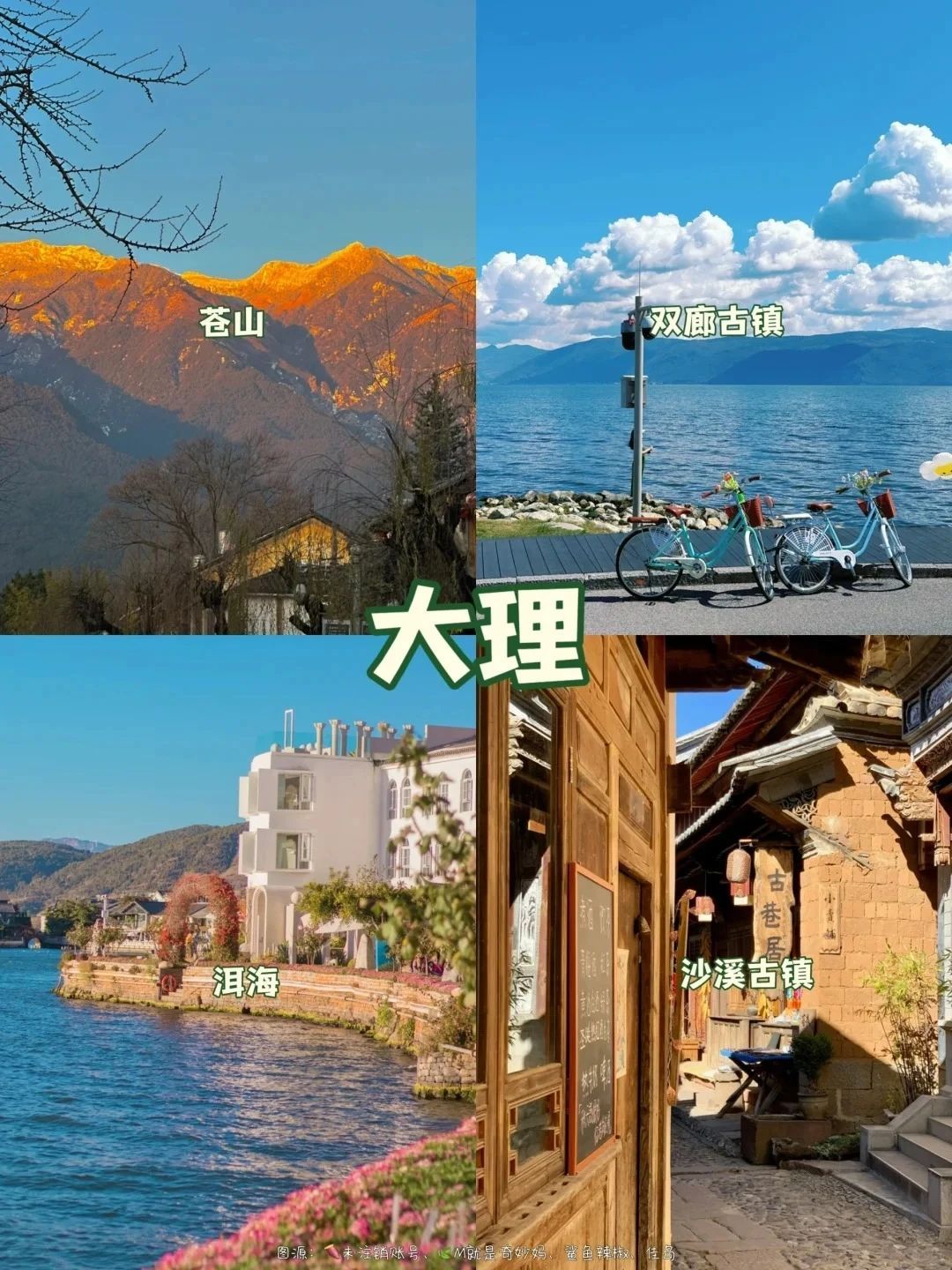 大理|景点:苍山、双廊古镇、洱海、沙溪古镇|美食:乳扇、饵块、稀豆粉油条