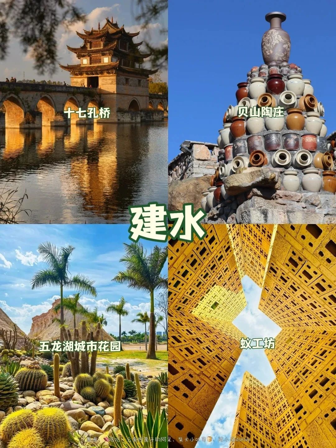 建水|景点:十七孔桥、贝山陶庄、五龙湖城市花园、蚁工坊、文庙|美食:草芽、烧豆腐、狮子糕