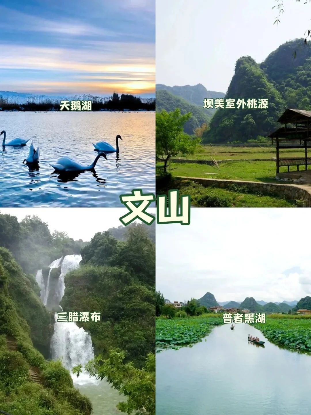 文山|景点:普者黑、天鹅湖、坝美村、三腊瀑布|美食:文山酸汤米线、酸牛肉、花糯米饭、三七汽锅鸡
