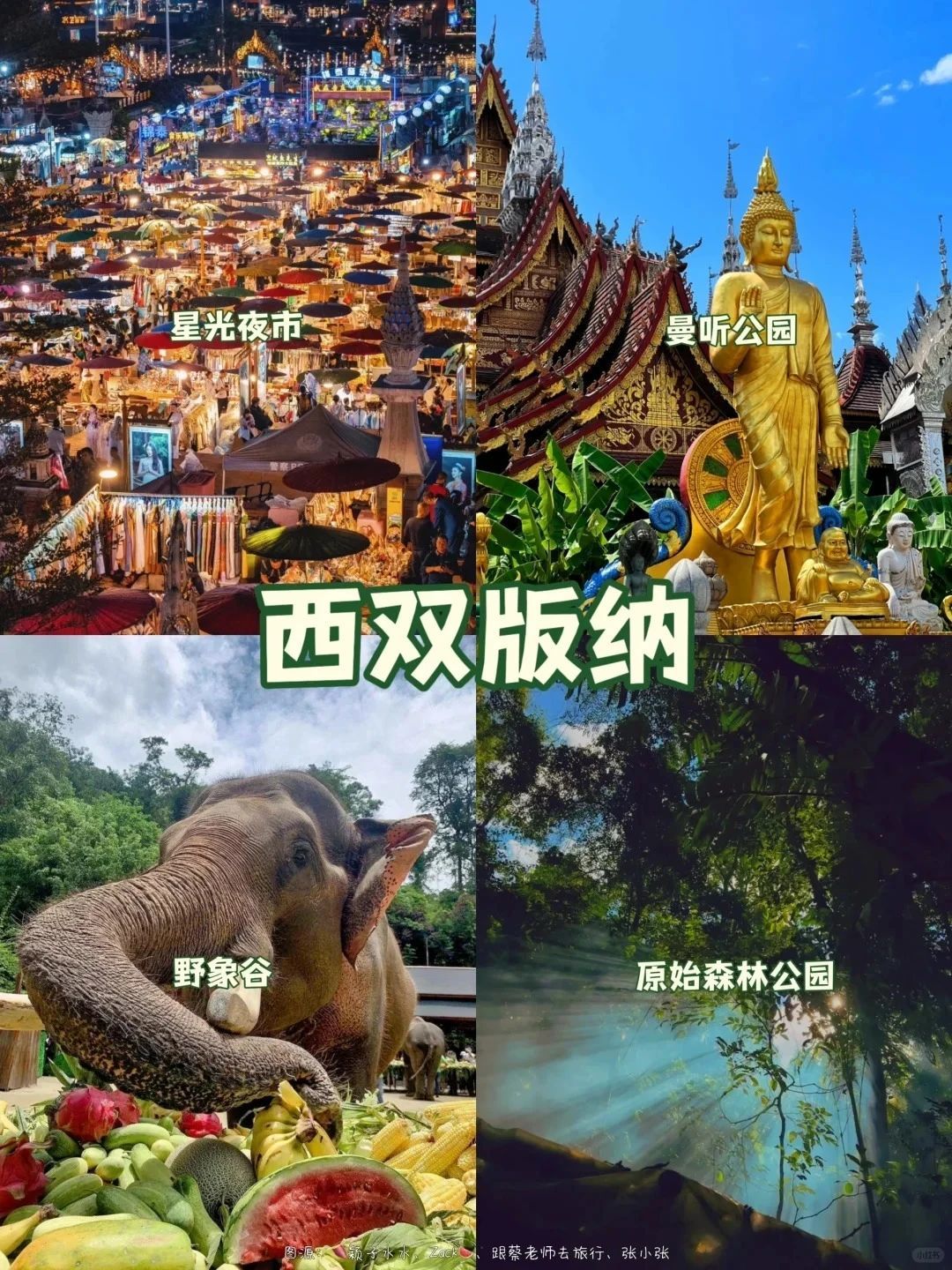 西双版纳|景点:星光夜市、曼昕公园、野象谷、中科院植物园|美食:香茅草烤鱼、手抓饭、柠檬撒、舂鸡脚