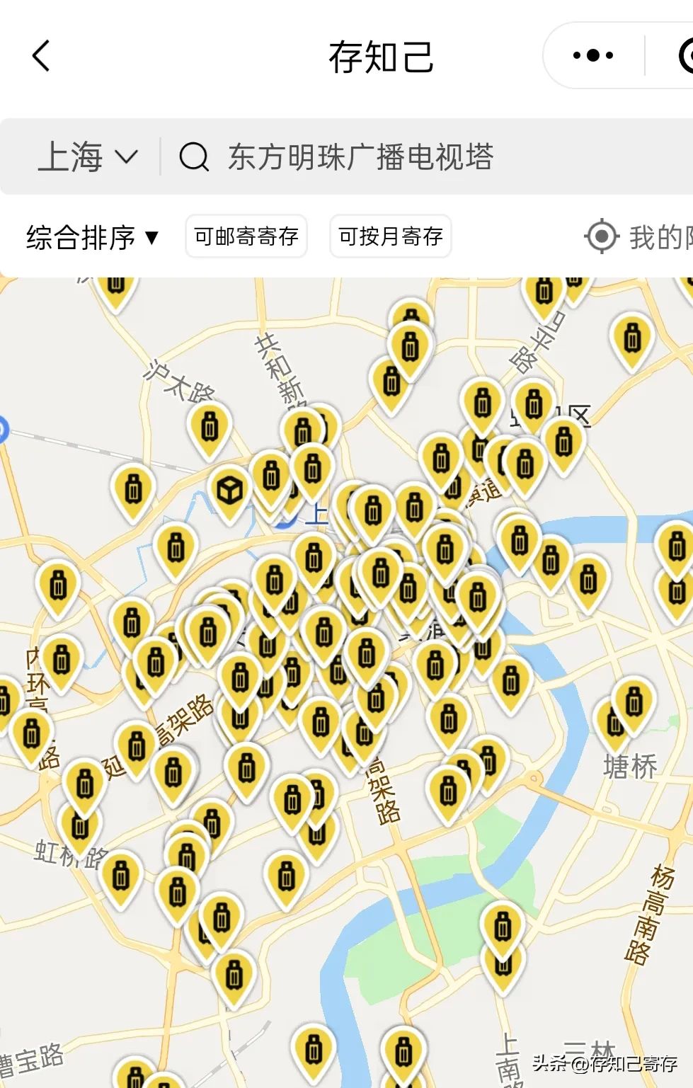 搜索“存知己”,支持行李寄存和行李寄送,上海很多行李寄存点