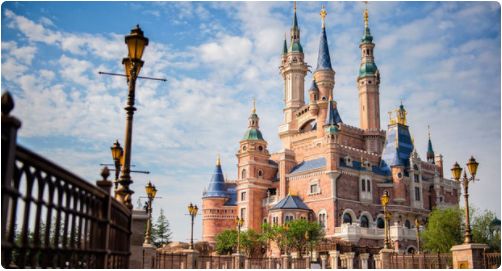 上海迪士尼乐园 :由六大主题园区组成,包括:“米奇大街”、“奇想花园”、“探险岛”、“明日世界”、“宝藏湾”及拥有“奇幻童话城堡”的“梦幻世界”。