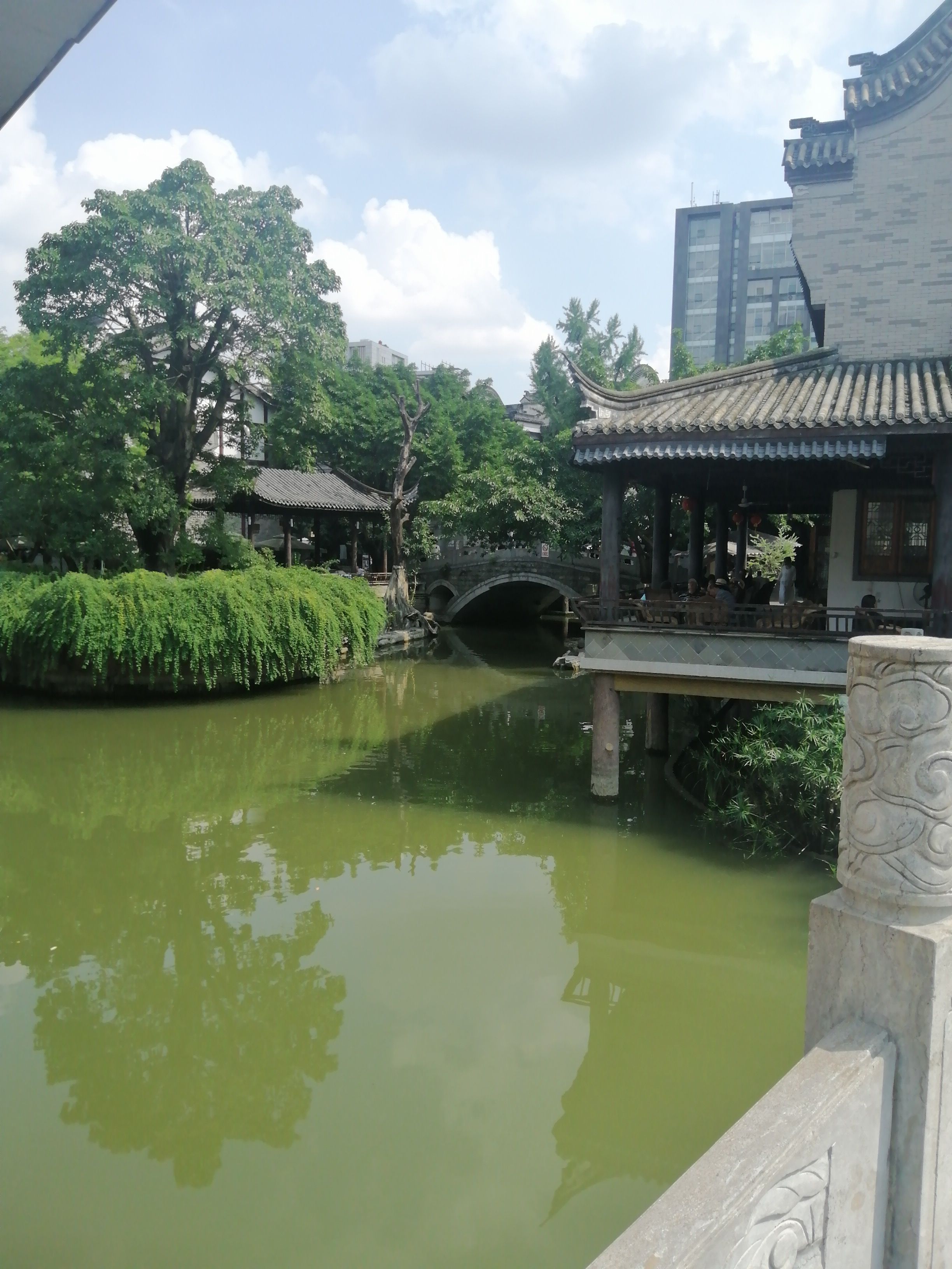 这里有小桥流水,亭台楼阁,其规模和艺术风格,虽无法与江南水乡相比,但在成都市郊,也算是有个喝茶,休闲的去处。尽管附近的高楼大厦,比邻而建。但到了这里,也算是离开了闹市的喧嚣,嘈杂,给人一点清静,悠雅的享受。