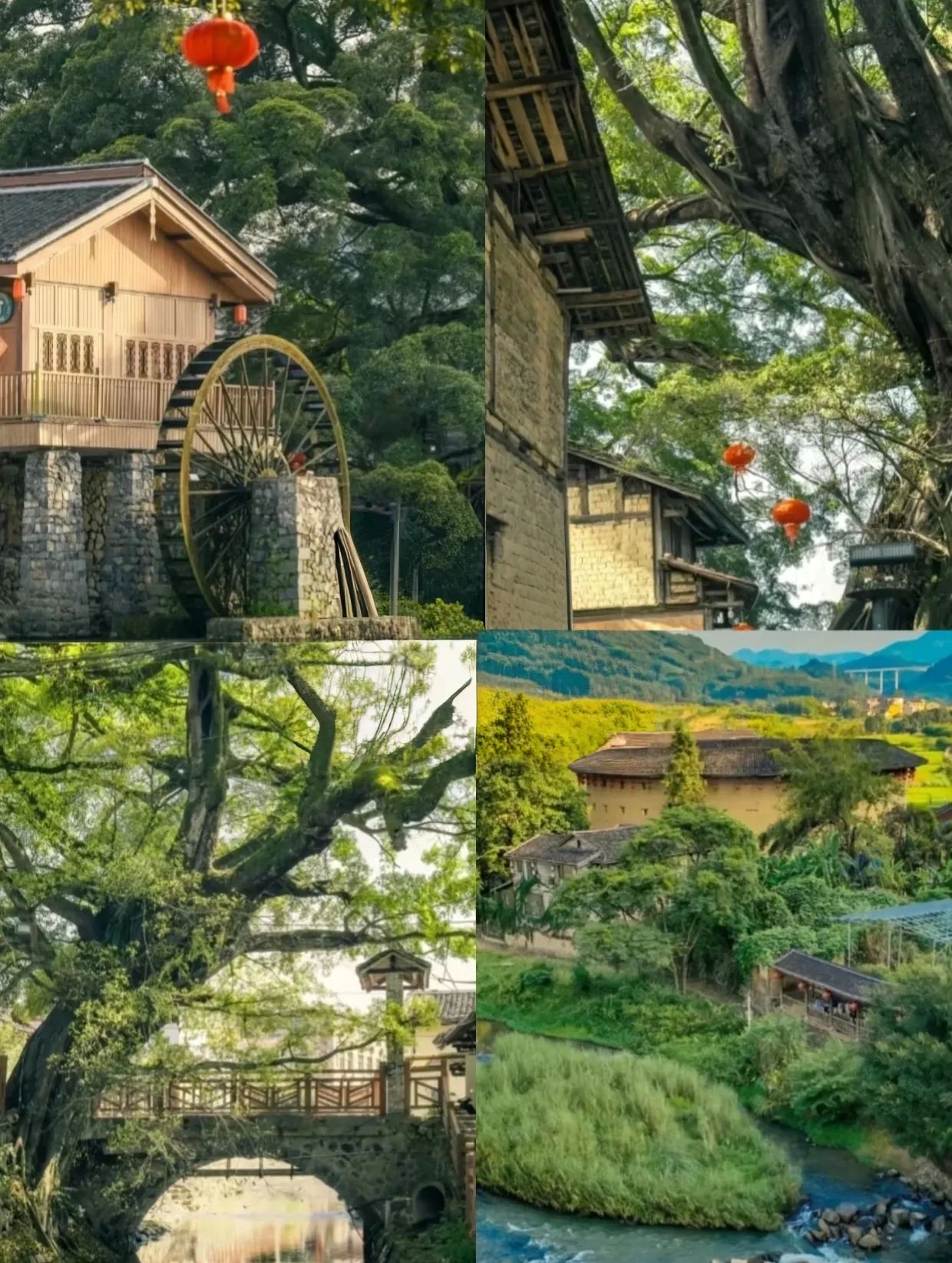 当我第一次看到田螺坑土楼群时,瞬间被它的壮观所震撼。这个被称为"四菜一汤"的土楼群坐落于山坡之上,规模宏大,风格独特。在云水谣景区,我沿着幽长古道漫步,看着百年老榕树下的小桥流水,感受着《云水谣》电影中的浪漫情怀。