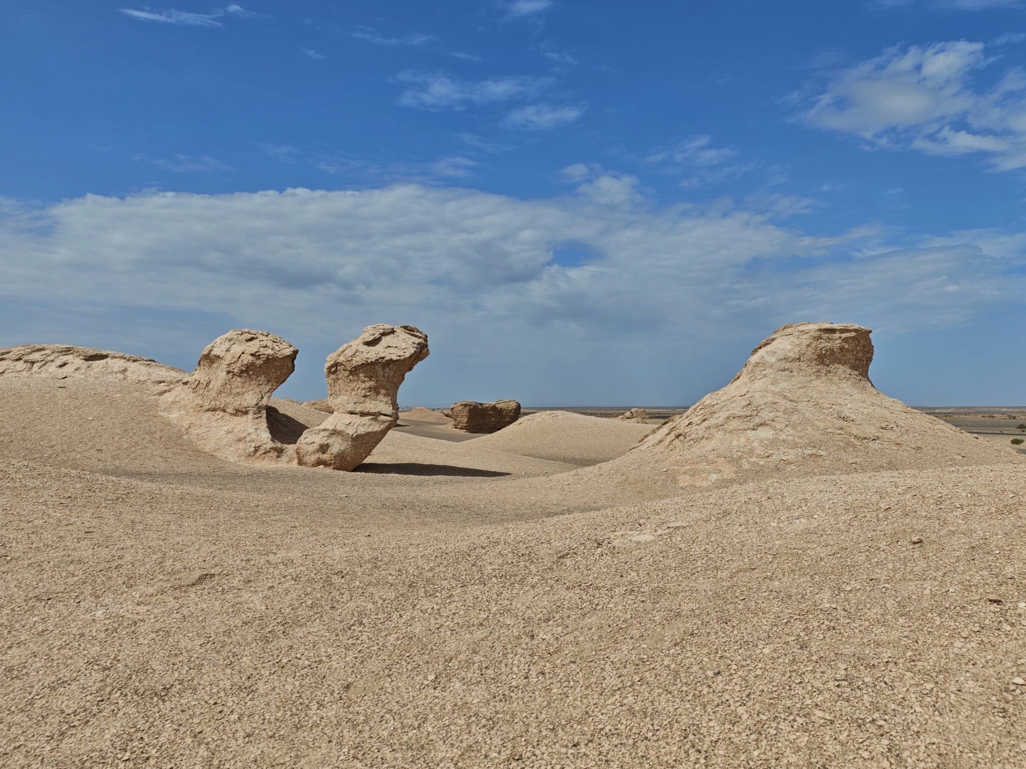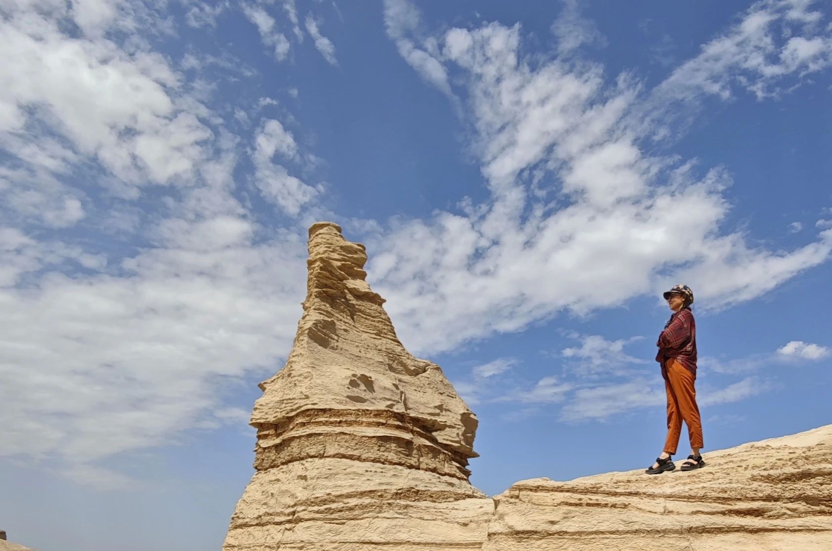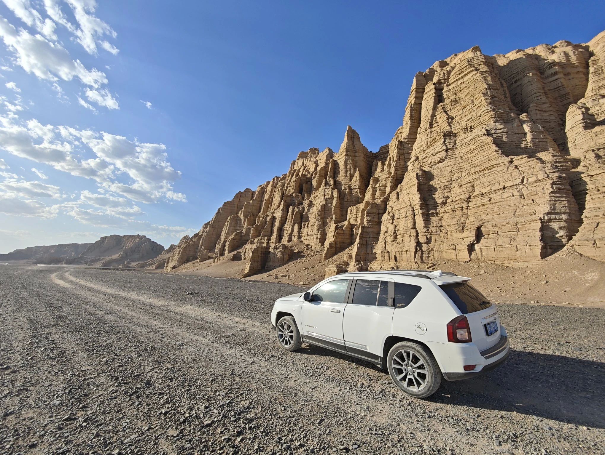 从东门开始,一路欣赏到景区内各种壮观的雅丹地貌景观,如瀚海神龟、双头马、瓜香少女等东门附近景点,直到70公里处红柳滩服务中心(景区内唯一酒店),道路为沥青路面,从红柳滩服务中到核心区的通天洞景约30公里,为碎石路段,我们以每小时20公里速度行进,期间多以驻车拍照,感受独特壮阔的雅丹地貌。