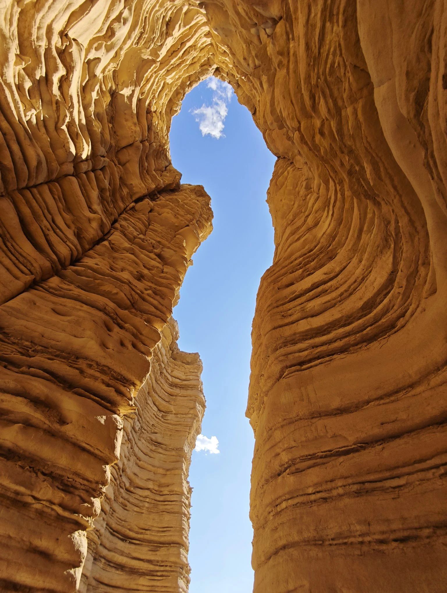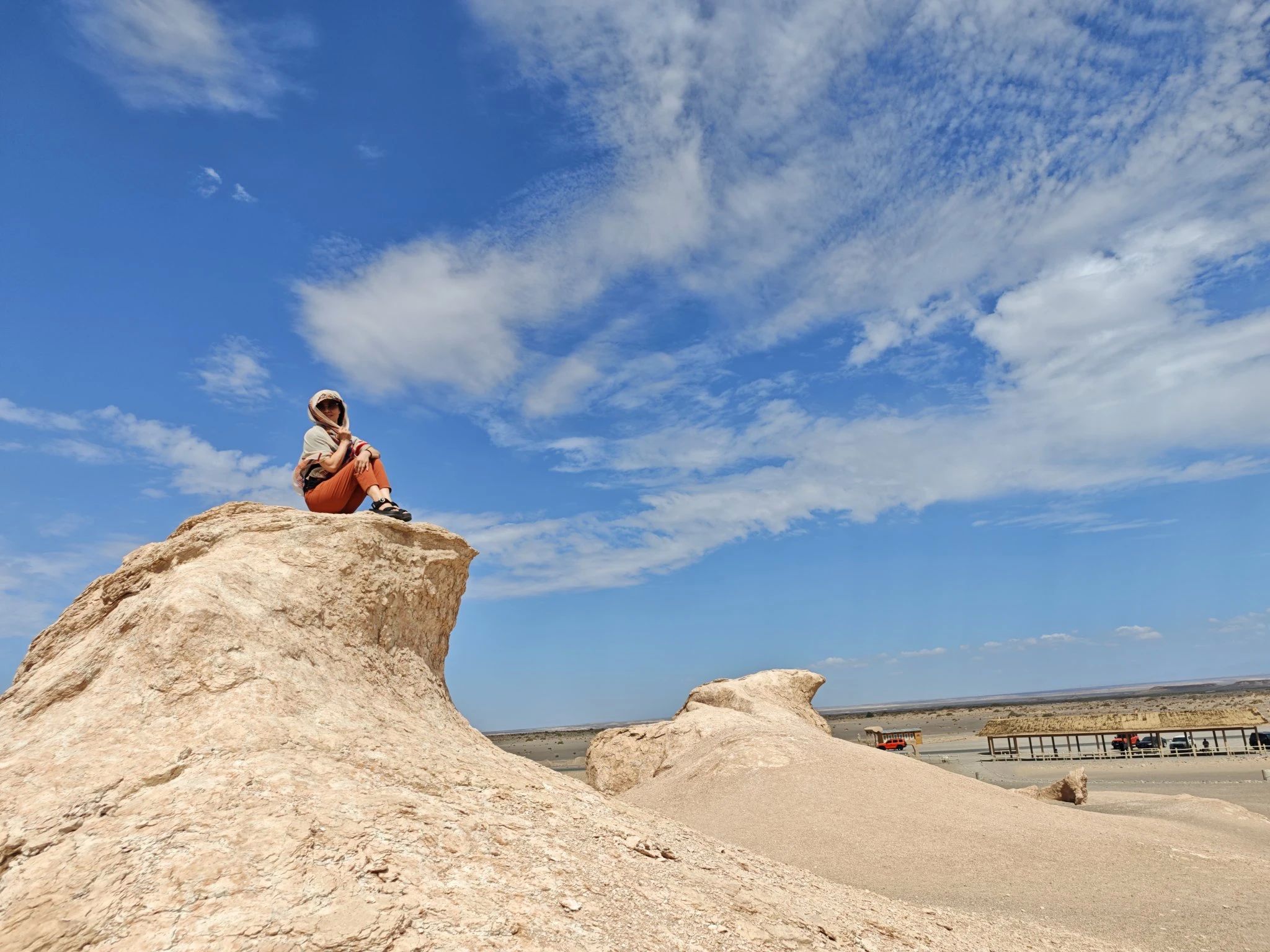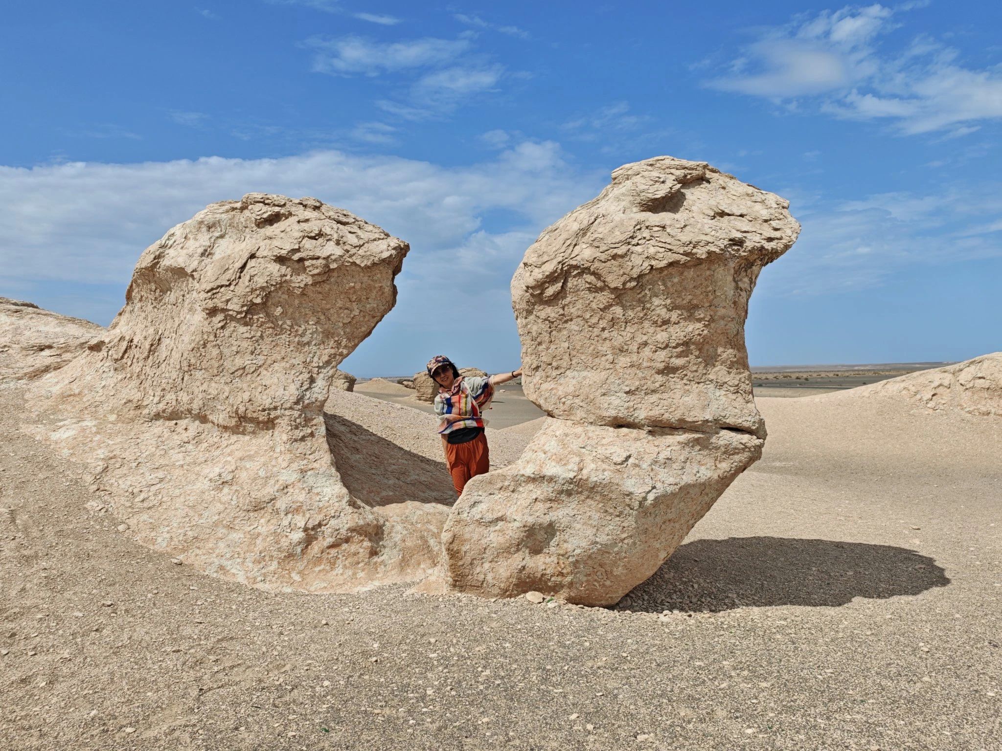 从东门开始,一路欣赏到景区内各种壮观的雅丹地貌景观,如瀚海神龟、双头马、瓜香少女等东门附近景点,直到70公里处红柳滩服务中心(景区内唯一酒店),道路为沥青路面,从红柳滩服务中到核心区的通天洞景约30公里,为碎石路段,我们以每小时20公里速度行进,期间多以驻车拍照,感受独特壮阔的雅丹地貌。