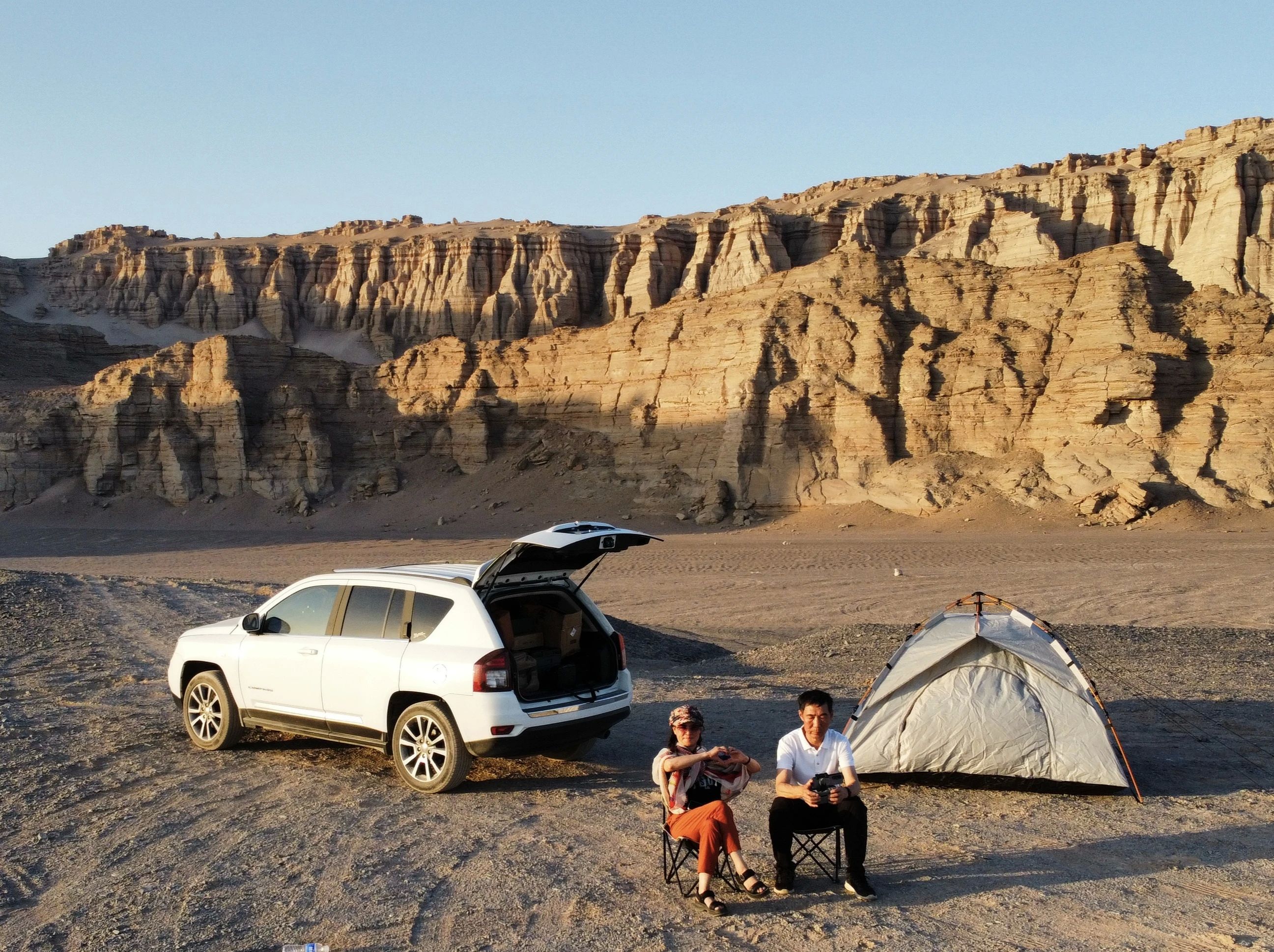 为了能在大漠深处看星空,我们下午看完“通天洞之后,返回5公里处的“水源地”(地名)露营,体验一次大漠深处“与世隔绝”的露营。