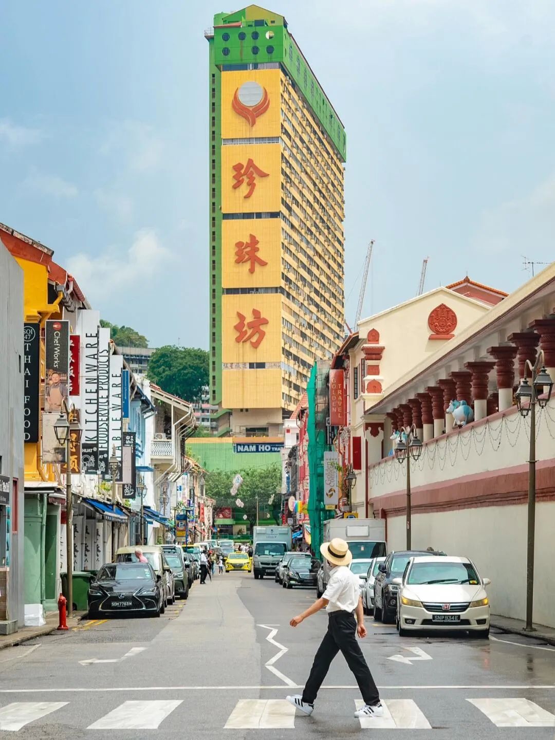 牛车水地标黄楼!傍晚时分阳光洒在「珍珠坊」三个大字上,复古港风氛围拉满(图3)。