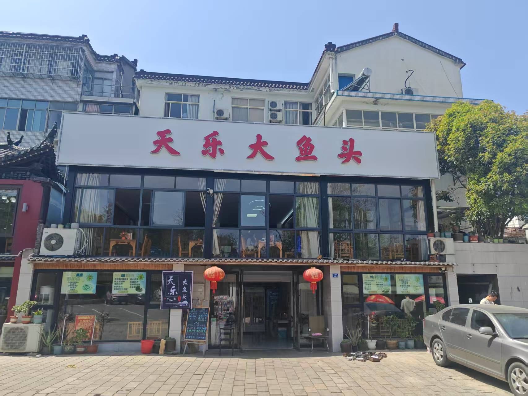 元。风景确实不错,还有舞狮表演,为了赶时间,午饭不回宾馆吃,就在景区外的天乐大鱼头饭店,点了:天目湖砂锅鱼头汤