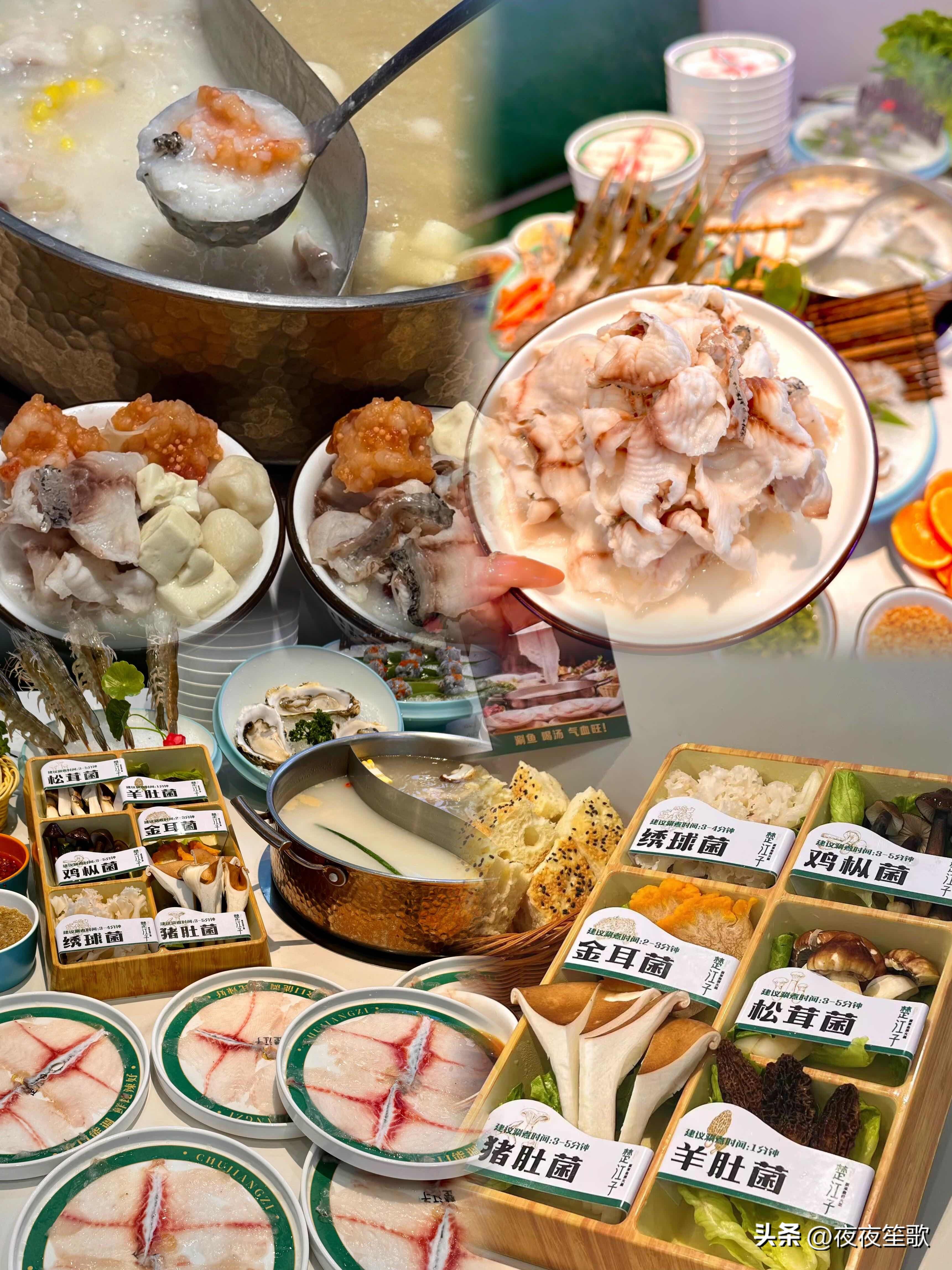 招牌:海鲜粥鸳鸯锅(一边是熬煮30分钟+的鲜甜海鲜粥,一边是鲜香鱼汤,先喝汤再涮菜)