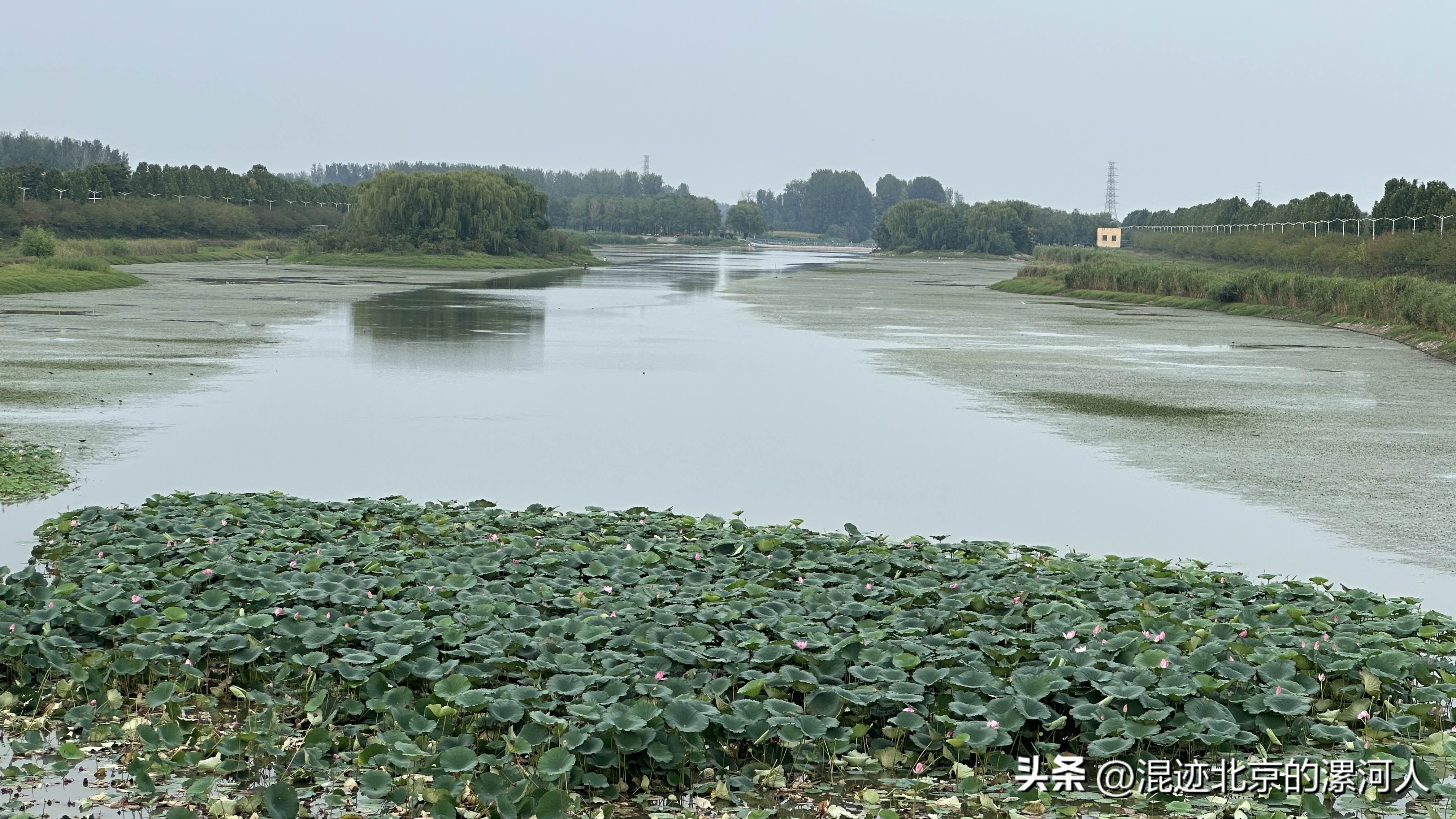 河水并不多,有的地方已经可以看到水下的淤泥。临近两岸的河面上滋生着绿色的水藻,就像铺了一层厚厚的水草。河中间水还比较清澈,特别是在汉白玉石桥那段河面上还有大片的荷叶。虽然已是秋天,但还有迟开的荷含苞待放。这座桥叫什么名字,也没有文字说明。