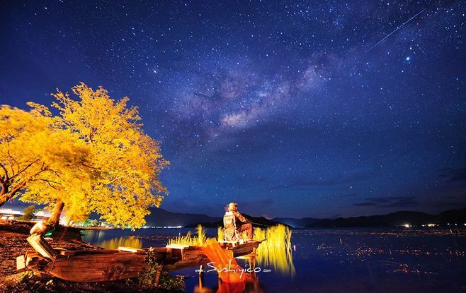 五、湖畔夜色:篝火、星空与人生的哲理