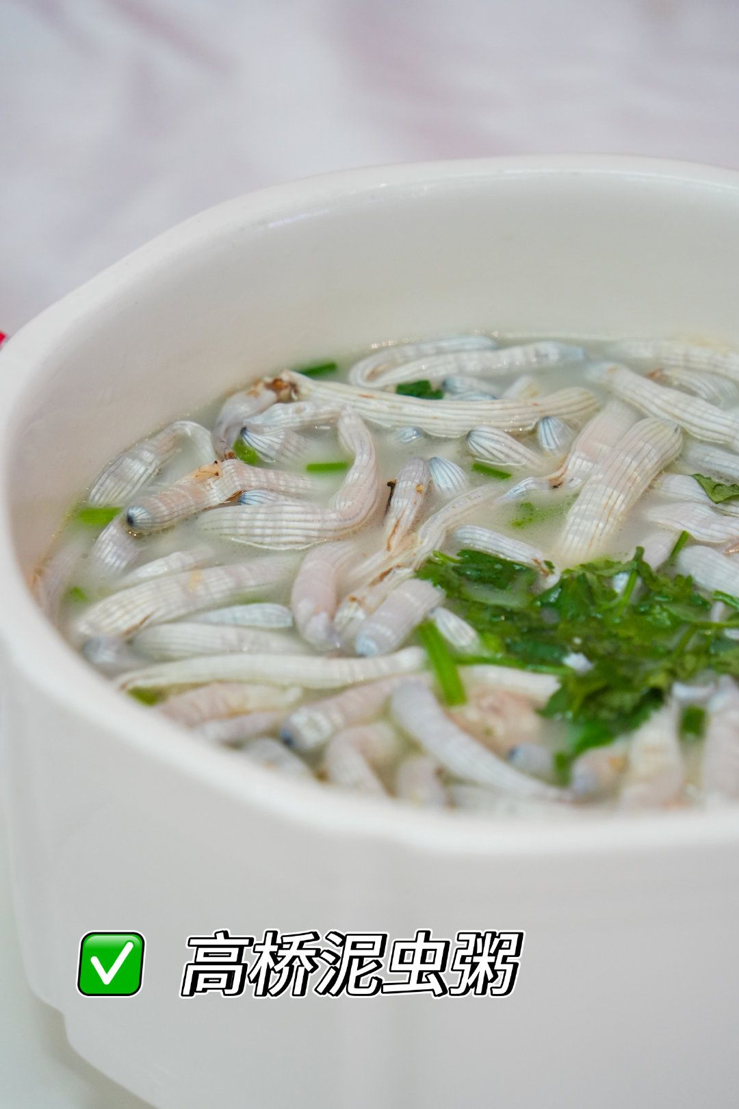 高桥泥虫粥:高桥镇独特的地理位置孕育出优质泥虫,熬成的粥鲜美清甜,每一口都是大海与谷物的完美融合!