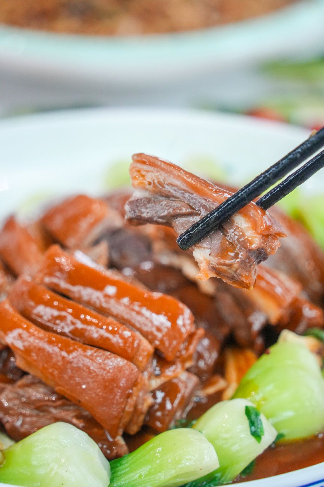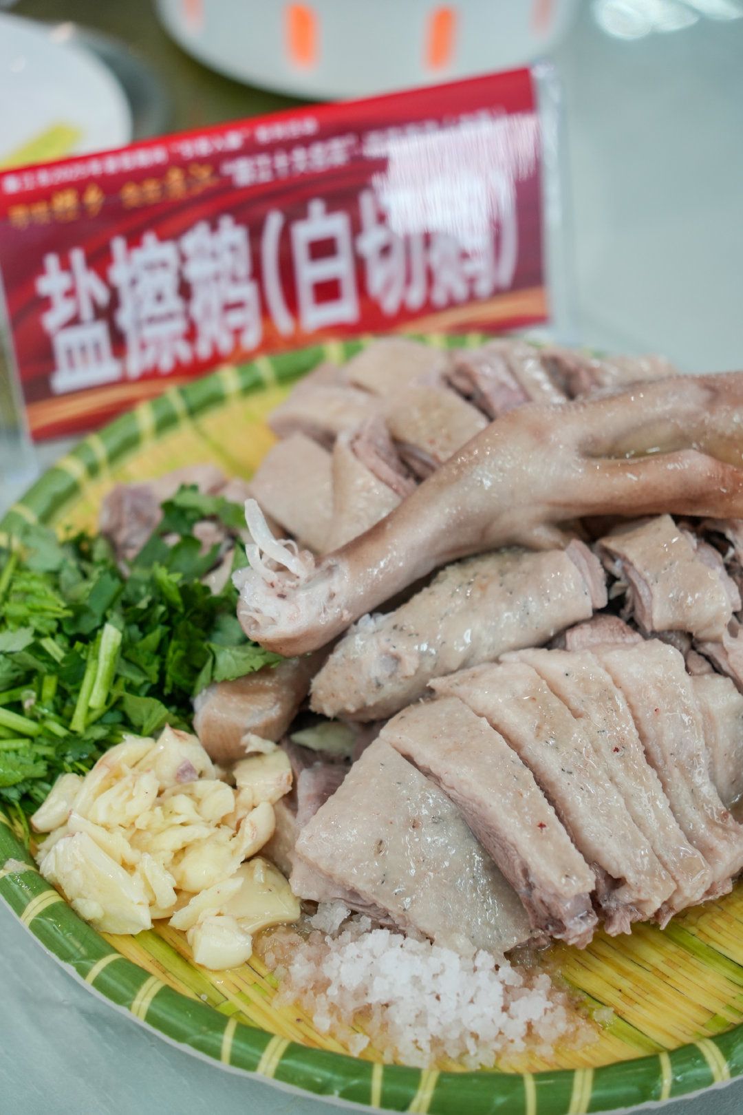 盐擦鹅:精选百日灰鹅,粗盐混香料擦遍鹅身,皮脆肉香,“三起三落”的卤制绝技,让它在众多鹅肉做法中独树一帜!