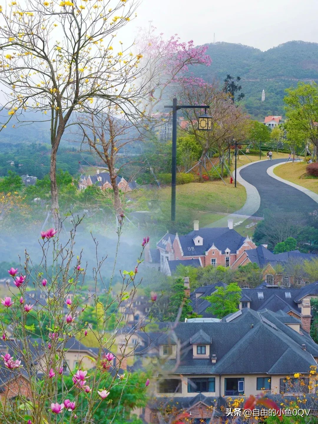 而且这里可不只有花海哦!瑞士风格的别墅区,在青山的环抱下,充满了浓浓的欧洲风情,分分钟拍出假装在国外的大片;山顶S形弯道,绿树环绕,欧式钟楼在夕阳余晖下更显神秘,日落时分,那景色简直绝绝子;岩桂溪畔的中式园林庭院,古色古香,亭台楼阁、小桥流水,穿上古装、汉服或者旗袍来这儿,你就是从画里走出来的人。