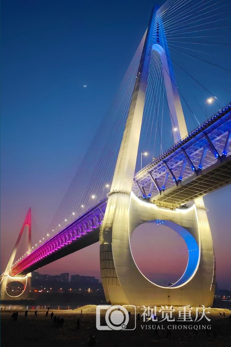 《疑是银河落九州》: 白居寺长江大桥点亮灯光,如同一道横跨两江的星河,为重庆的夜空增添了一抹奇幻色彩。大桥的灯光与周围的夜景相互辉映,展现出重庆这座桥都的独特魅力。