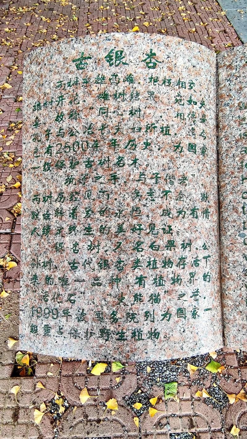 树龄与传说: 两棵银杏树相传为孔子与公冶长夫妇手植,树龄约2500年,被誉为“天下第一夫妻树”,东雄西雌相依而生,树高29米、胸围7米。