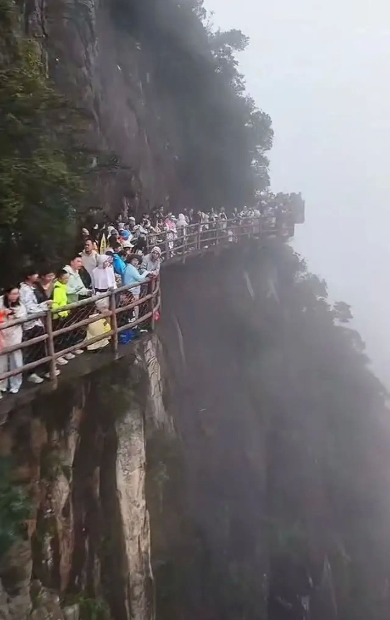 你有没有刷到过这样的视频?——悬崖边一块摇摇欲坠的巨石,上面挤满了拍照的游客;玻璃栈道被踩得吱呀作响,还有人故意蹦跳;狭窄的古栈道挤得水泄不通,稍不留神就可能被挤下山崖……