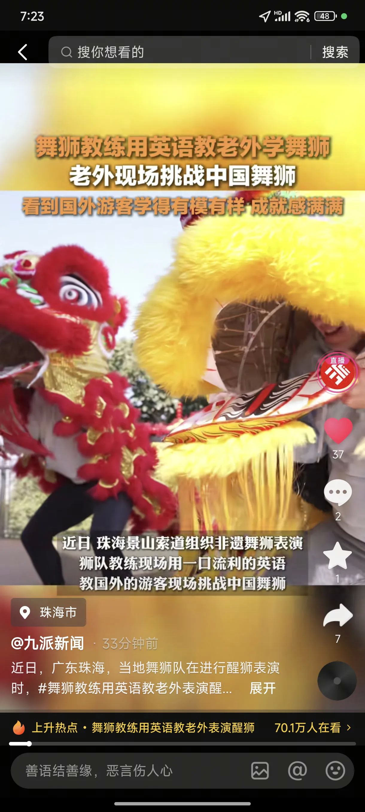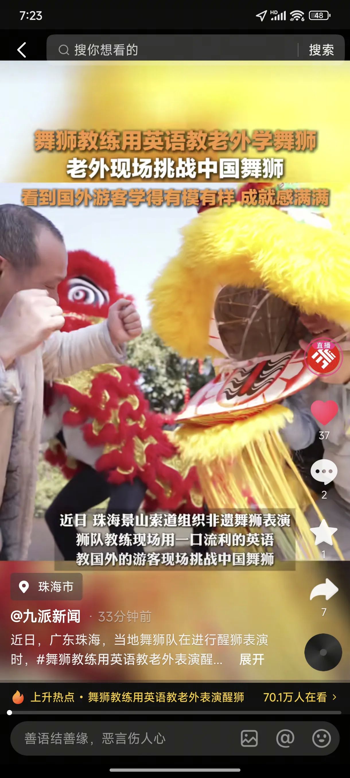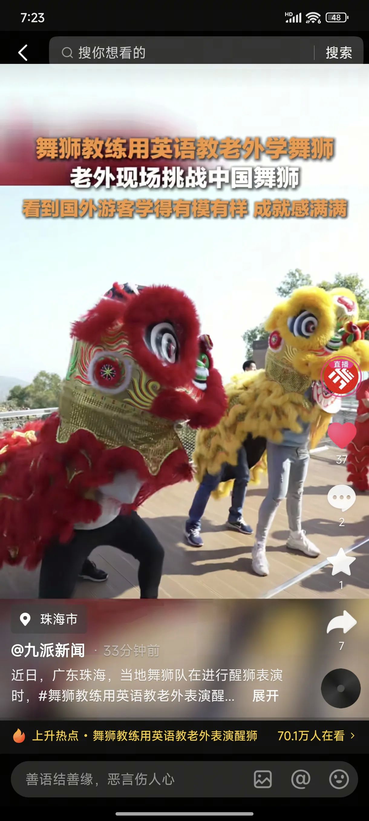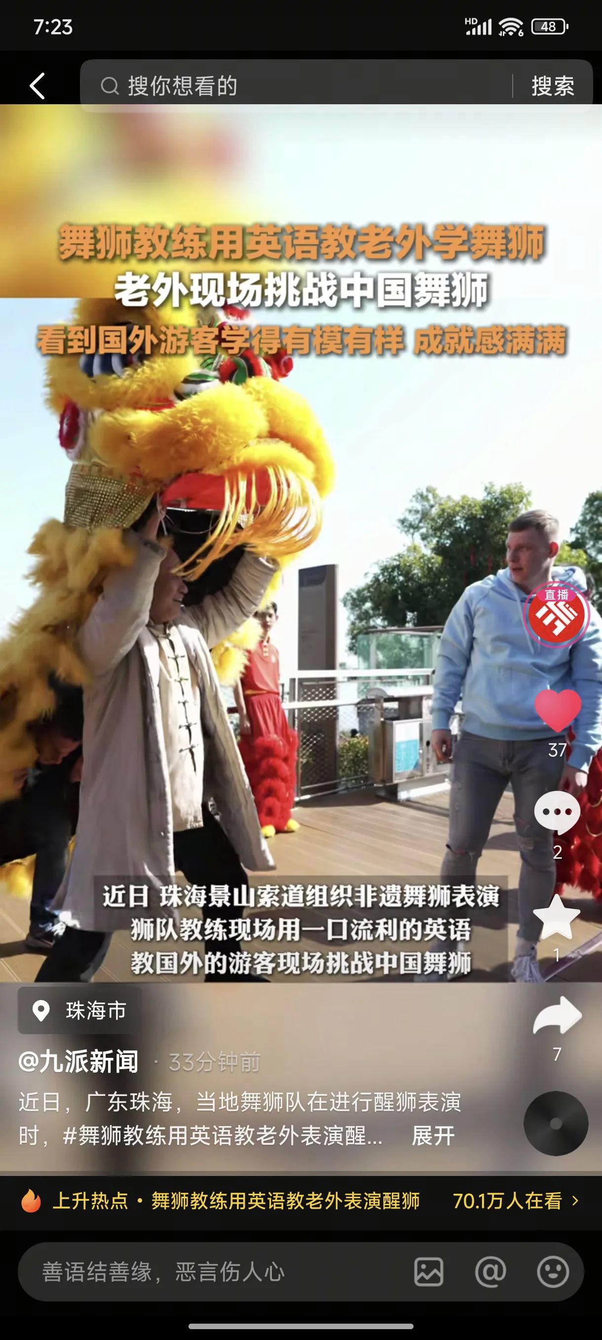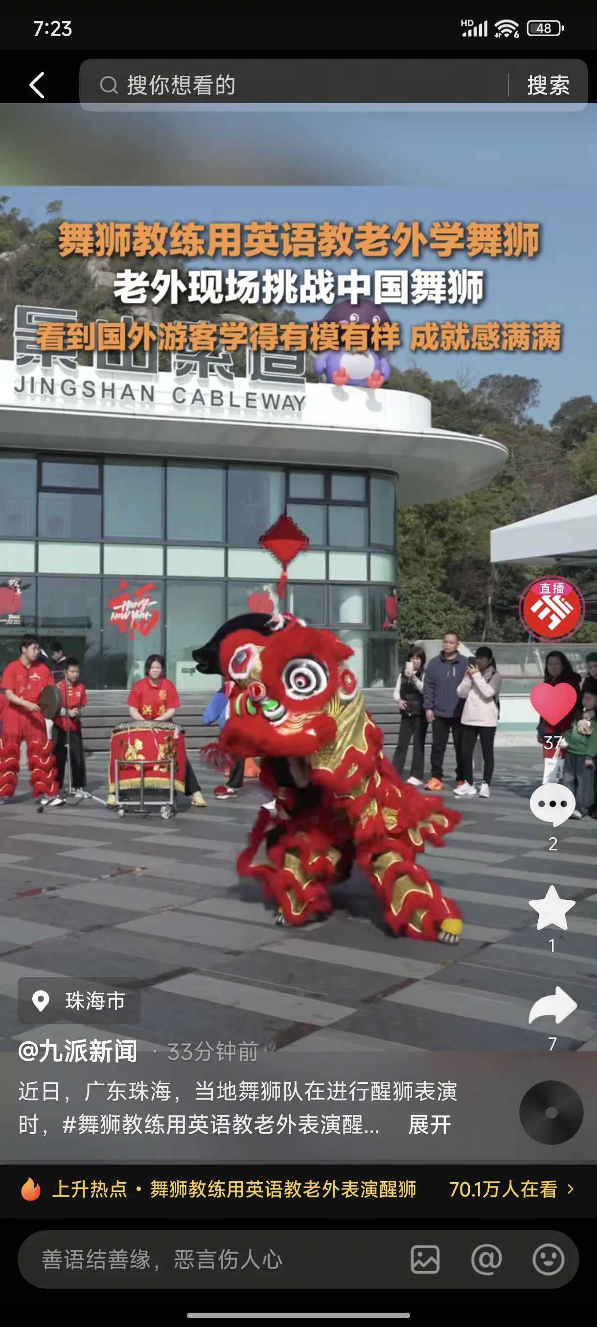 醒狮跃动乐翻天,老外学舞喜开颜,珠海新春共狂欢!