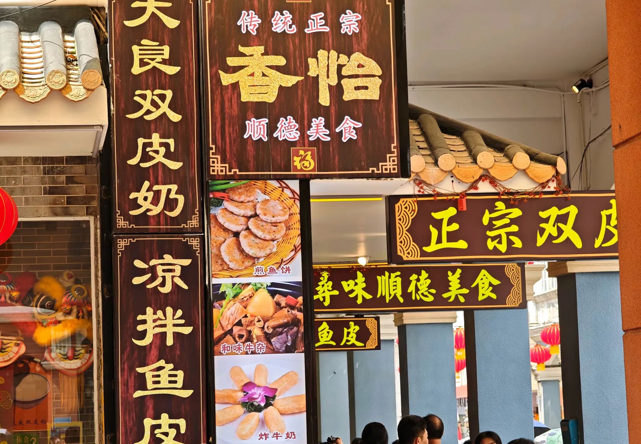 水牛奶一条街,节假日大排长龙,可能很早当日水牛奶就售罄。一大早在商铺开门前就来光顾,可以看到平日小街质朴的景象。奶制品爱好者推荐:定文奶凰(炒牛奶、蒸奶卷)、水牛奶、老街坊(双皮奶)、金榜梯底牛乳铺(自制姜撞奶)、牛乳白粥、炸牛奶、凤城鱼皮、均安鱼饼。